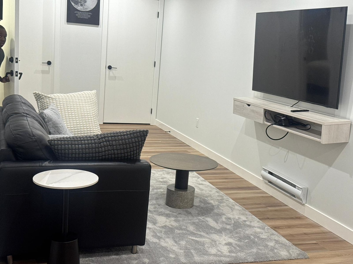 This spacious 1100 sq ft private 3-bedroom basement suite features a king bed, a queen bed, and two twin beds. Enjoy a fully equipped kitchen, dining for six, open-concept living, in-suite laundry, two full bathrooms (including one ensuite), keyless entry, a dedicated workspace, fast reliable Wi-Fi, and smart TVs in every room. This cozy, thoughtfully designed space offers a stylish retreat with all the comforts of home. Perfect for families and groups seeking relaxation in a quiet neighborhood.