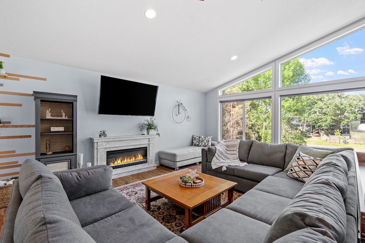 Nakahanda ang tuluyang ito na parang duplex na may mga may-ari na naninirahan sa itaas (mayroon kaming 3 maliliit na bata) at mga bisita na may buong, pribadong access sa ibabang kalahati. May pribadong garahe ang mga bisita (hindi available mula Nobyembre hanggang Abril) at bakuran na may libreng kahoy na panggatong. Nagbibigay ang pribadong pasukan ng access sa 2,200 sq ft na espasyo na may kasamang 3 seasons room na may gas fireplace, laundry, at kumpletong kusina. 1 open room, isang pribado, at isang partial room na walang bintana. Malapit sa mga bike trail, beach, mini-golf, atbp.