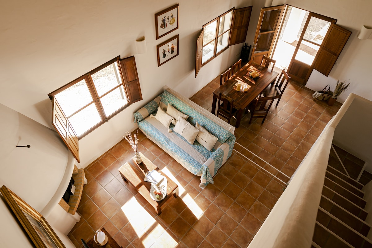 Very beautiful finca style house with lake and sea view and pool. Fully renovated. Situated in a quiet and protected area just a few minutes car or bike ride from the most beautiful beaches of the island and the best restaurants, bars and shops in La Savina, S. Francesc and in Espujols. 4 bedrooms and 3 bathrooms . A living and dining room with open kitchen and many outdoor spaces. Lots of terraces and exterior dining area. 180° lake and sea-view and to the east and the west.