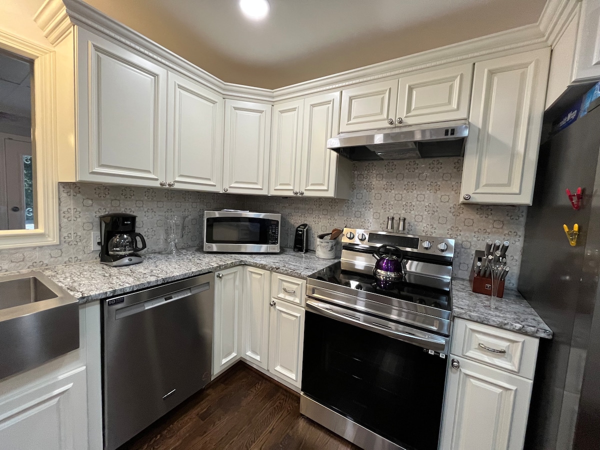 Kumusta, John dito sa iyong serbisyo! Nasasabik akong maging host mo para sa biyahe mo sa Winston - Salem. Ipinagmamalaki ko ang pagbibigay ng magandang tuluyan, sa magandang presyo. 5 minuto mula sa Wake Forest University at 10 minuto sa lahat ng iba pa. *MINIMUM NA 2 GABING PAMAMALAGI* Bagong ayos na Wi - Fi, Netflix, Cable TV Walo ang tulog: 1 king bed, 3 reyna Kusinang kumpleto sa kagamitan. AC & Heating Maaaring magkasya hanggang sa 6 na kotse sa driveway at paradahan sa kalye. Universal Car Charging Station Naniningil ito sa 40 amps kaya 9.6kw.