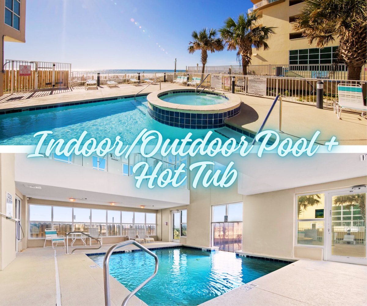 Beachfront*Mga Tanawin sa Wraparound Balcony*Pool*Hot Tub
