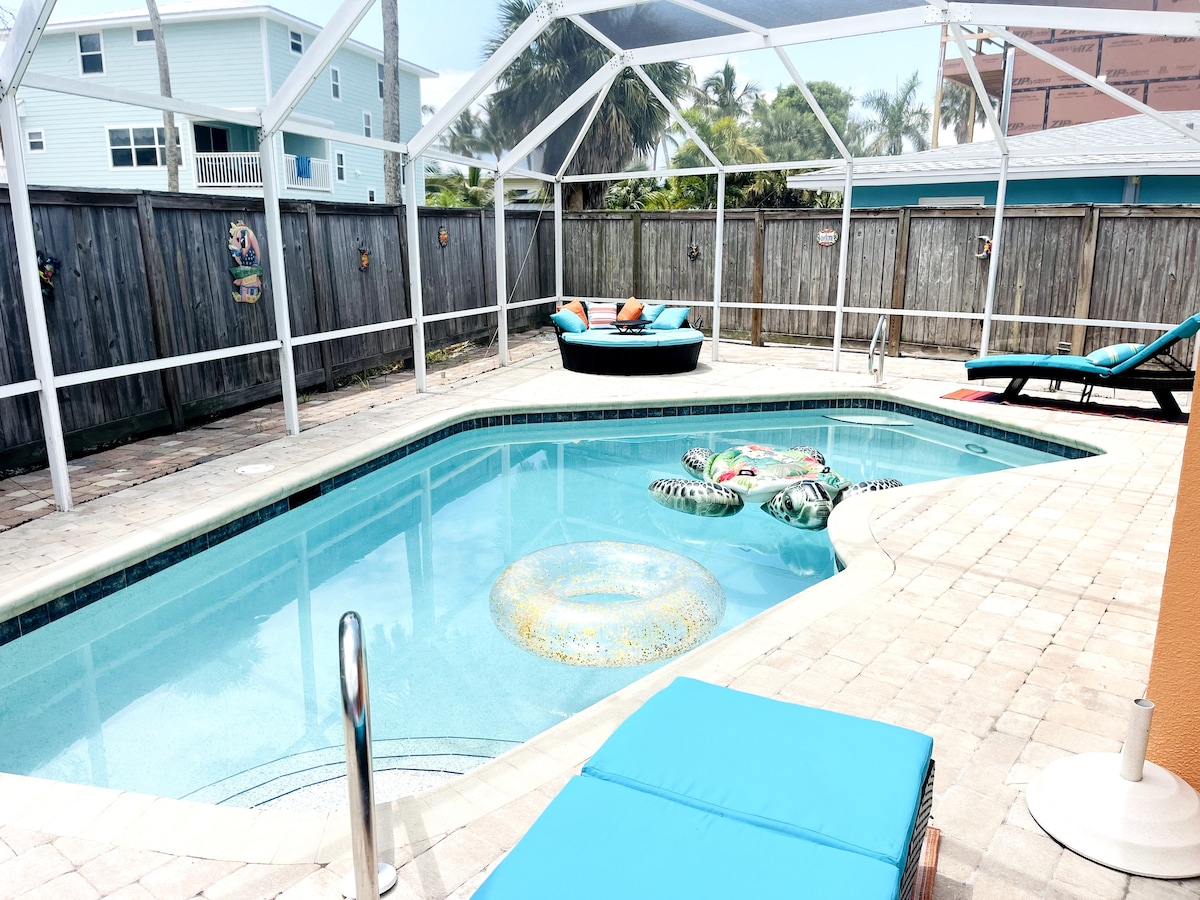 Maligayang pagdating sa iyong tuluyan na malayo sa tahanan! Nag - aalok ang kaakit - akit na bakasyunang ito sa baybayin ng perpektong kombinasyon ng kaginhawaan at kaginhawaan, ilang hakbang lang ang layo mula sa beach(1 bloke). Kung naghahanap ka man ng mapayapang bakasyunan o bakasyon na puno ng paglalakbay, ang tuluyang ito sa pool na matatagpuan malapit lang sa Times Square ay tumatawag sa iyong pangalan! Kunin ang beach cart at mga upuan para makapagpahinga at makakita ng ilang dolphin, o mag - bounce sa paligid ng mga tindahan at iba 't ibang bar/restawran para sa araw.