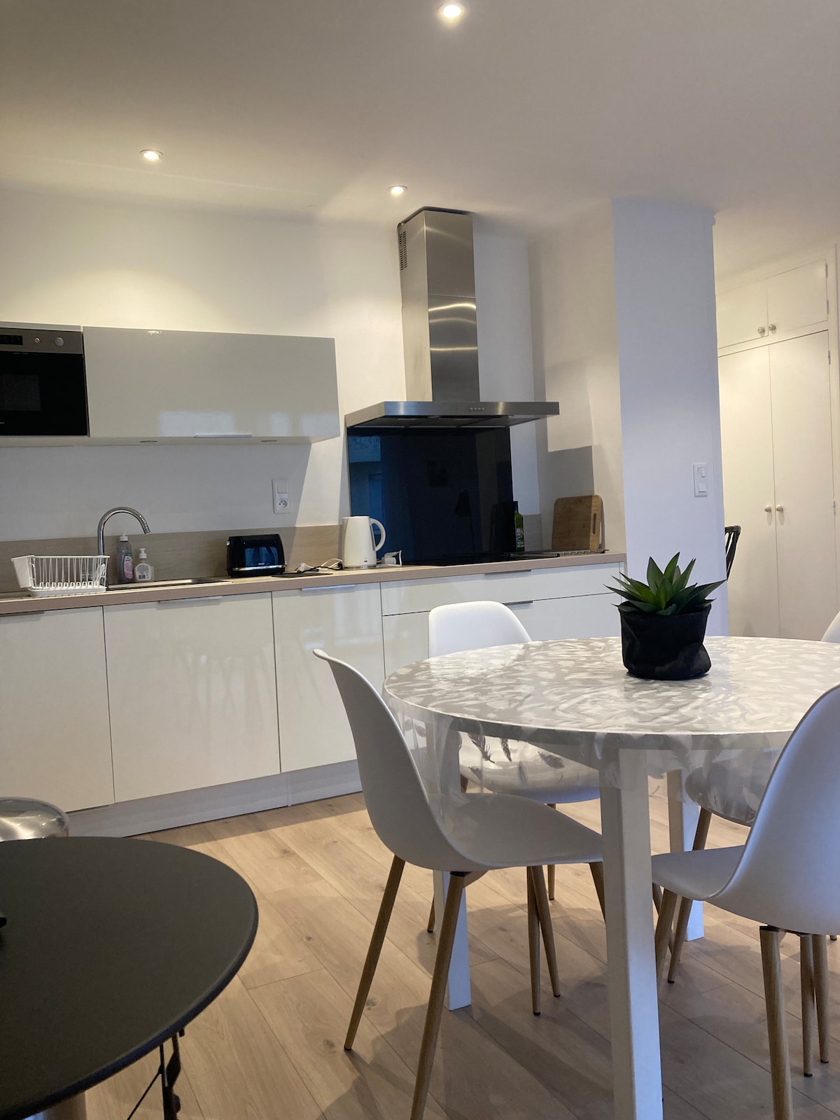 Idinisenyo ang tuluyang ito sa pangunahing tirahan na may independiyenteng pasukan para sa iyong kaginhawaan: malaking sala na may kumpletong kusina. Isang silid - tulugan na may ensuite na banyo at hiwalay na toilet. Pribado ang paradahan at sarado ito ng gate. May sapin, tuwalya, atbp. Nakareserba lang ang tuluyan para sa maximum na 2 may sapat na gulang.