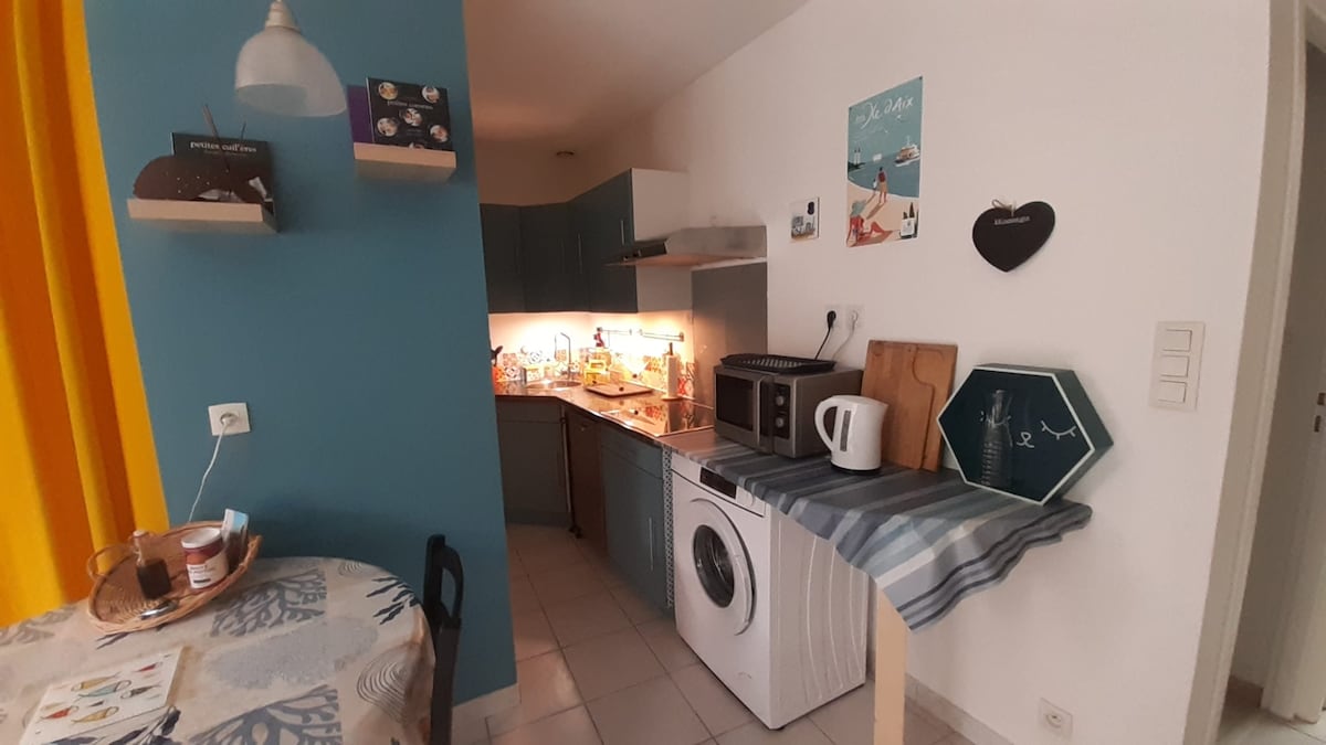 Magandang lokasyon sa gitna ng Fouras, sa bahay na may 4 na apartment, wala pang 5 minutong lakad mula sa malaking beach (may reserbang tubig kapag low tide), malapit sa mga tindahan at pamilihang pandagat: - apartment na 30 square meters, na matatagpuan sa unang palapag na binubuo ng isang malaking sala: seating area na may sofa bed at isang kumpletong kusina, isang silid-tulugan na may higaang 160, isang shower room at isang common courtyard - malapit sa Rochefort at La Rochelle