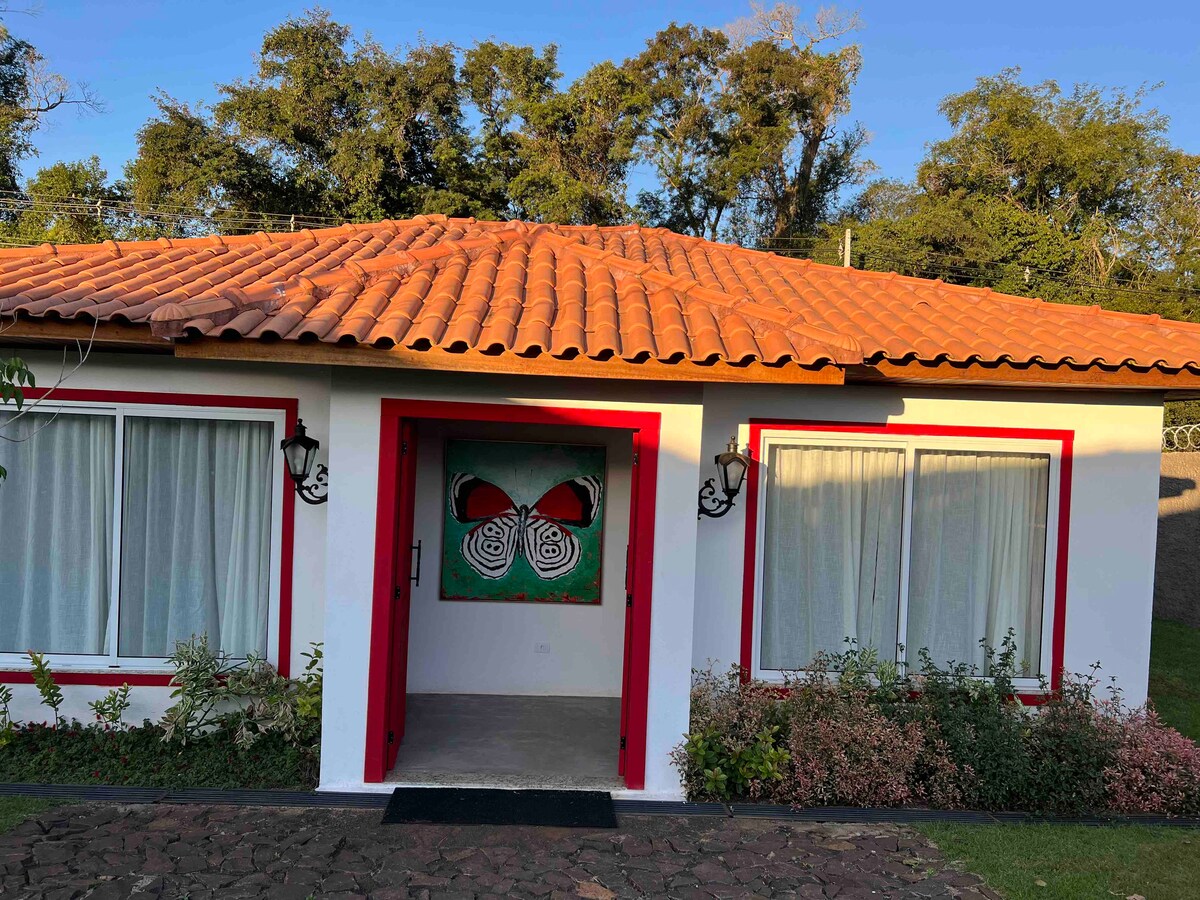 São três chalés (Paz, Alegria e Amor) ambos em alvenaria, bem amplos, aconchegantes e privados, com banheiro privativo, frigobar, ar condicionado e uma cama queen, sendo opcional a adição de três camas de solteiro*. * Aceitamos dois hospedes por chalé, caso haja um terceiro hóspede será cobrado o valor de R$50,00 por pessoa. Crianças de até 10 anos não pagam.