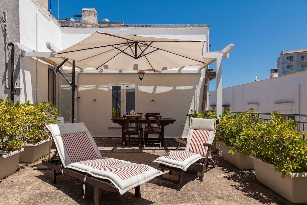 Nakakabighani at caracteristic na apartment, ang Suitestart} 8 ay matatagpuan sa isang berde at ligtas na lugar na may lahat ng mga pasilidad, sa 500 m. mula sa pangunahing Square. Angkop para sa isang mag - asawa o pamilya na may dalawang anak na higit sa 5 taon (pagkakaroon ng hagdan). Inayos kamakailan ang Mini na may mga de - kalidad na finish at mataas na antas ng confort: malaking shower na may chromotherapy, double TV at SkyTV, Air Cond., washing machine at eleganteng fornitures. Isang nakakarelaks na kapaligiran, na may romantikong alcova at napakalawak na terrace.