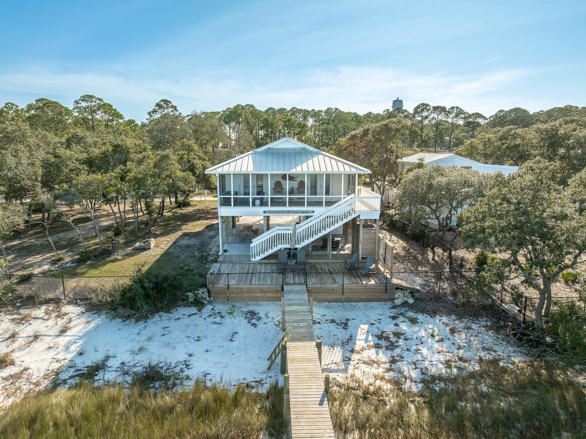 A beachfront home nestled among the trees with a new pool addition March 2023. Enjoy your own private retreat on the Forgotten Coast, known for spectacular fishing, scalloping, kayaking, hiking. A Golf course is only a minute away. Fish from our backyard or relax on hammocks among the trees. Gorgeous ocean views from the living/dining room, bedroom and deck and a sandy beach perfect for sunbathing or creating memories around a beach fire. Plenty of parking for boat/RV.
