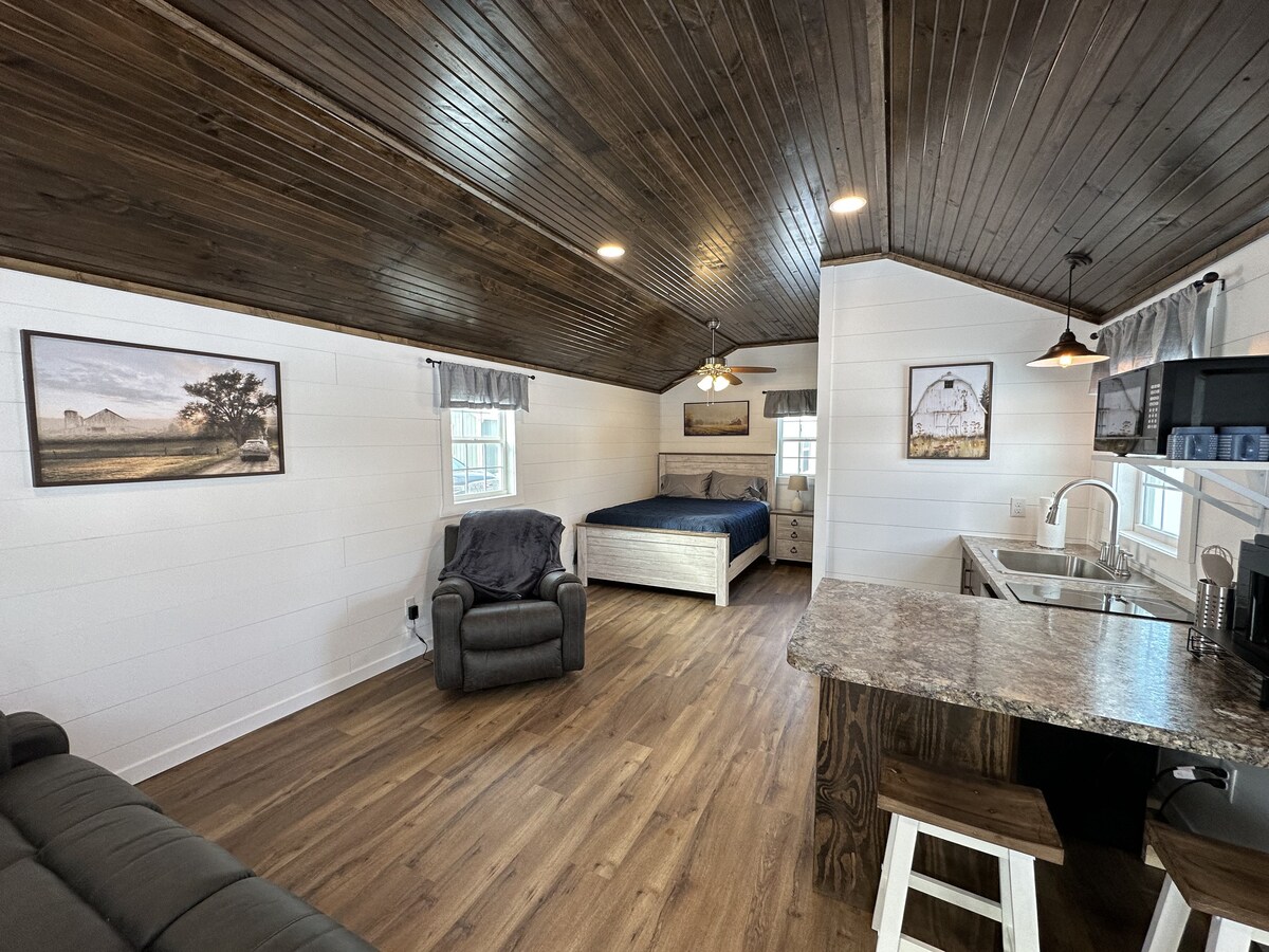 Mainam para sa mag - asawa, taong nasa labas, o biyahero! Matatagpuan ang cabin na ito sa aming 20 acre property, wala pang 10 minuto mula sa Rend Lake, I57 access, at pampublikong pangangaso at sa loob ng 1 oras mula sa Shawnee National Forest. Kasama ang paggamit ng mga kayak, mga poste ng pangingisda para sa catch & release pond, at trail sa paglalakad. Available ang paggamit ng target na bow kapag hiniling. Gas grill, firepit at firewood. TANDAAN: ito ay isang 12x20 studio cabin na may 1 full bed at 1 twin - sized foam couch sleeper. Hindi namin pinapahintulutan ang mga alagang hayop.
