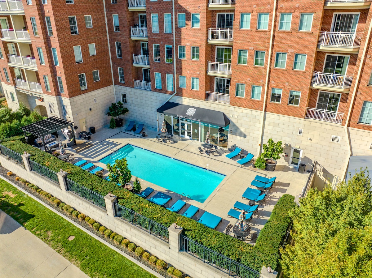 Ang maganda, 700 talampakang kuwadrado na moderno at bukas na palapag na plano ng isang silid - tulugan na apartment, na may walkout patio ay maginhawang matatagpuan sa Highpoint sa downtown Columbus. Ang apartment na ito ay perpekto para sa mga taong bumibiyahe at gustong maranasan ang Columbus dahil malapit ang apartment sa lahat ng kaguluhan na inaalok ng lungsod. Ang apartment na ito ay perpekto para sa isang mag - asawa o maliliit na grupo na kumain nang sama - sama, mag - hang out, magrelaks, tuklasin ang mga nakapaligid na lugar, makipag - chat at magsaya. LIBRENG Paradahan (1 sasakyan) at LIBRENG WIFI