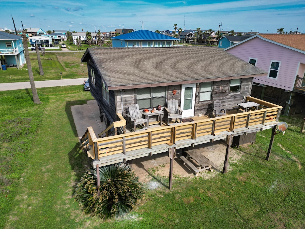Magrelaks at magsaya kasama ng buong pamilya sa mapayapang 2 - bed 1 - bath beach house na ito. Ang malaking bakuran na may kumpletong bakod ay nagbibigay ng ligtas na lokasyon para sa mga bata na maglaro pati na rin ang lugar para sa mga maliliit na aso. Mayroon din itong fire pit na masisiyahan kasama ng iyong pamilya. Ang tuluyan ay komportableng natutulog sa anim na tao at may kasamang malaking sukat sa itaas na deck na may perpektong upuan para mapanood ang magandang pagsikat ng araw o inumin ang gusto mong inumin habang naririnig ang mga alon sa gabi. 15 min. lang mula sa lahat ng atraksyon sa Galveston