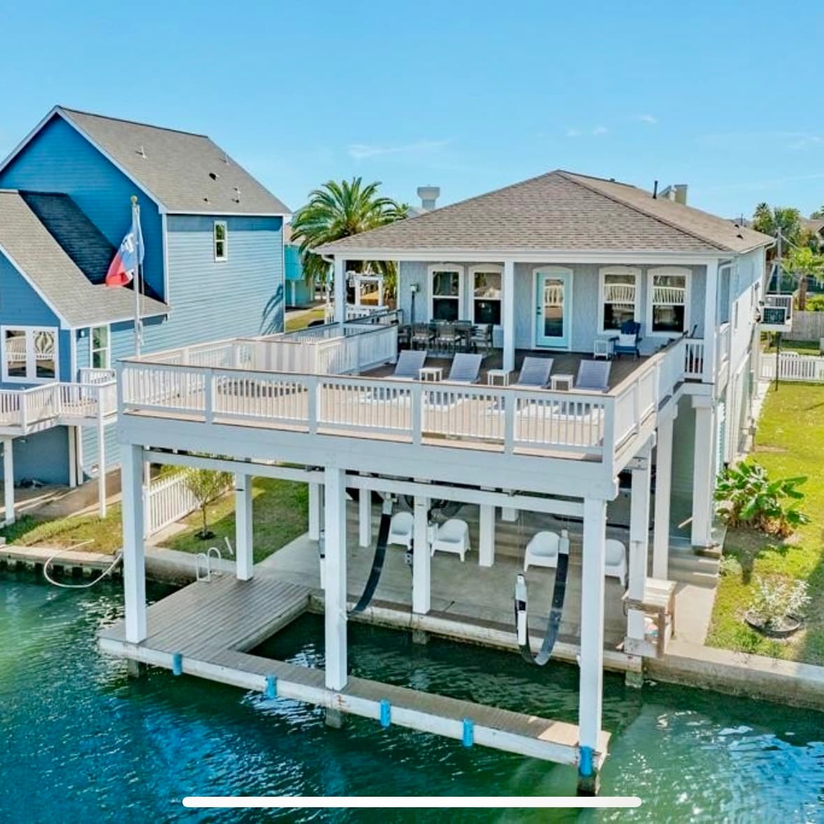Naghahanap ka ba ng modernong magandang dekorasyon na beach home kung saan puwede kang mangisda/mag - kayak mula mismo sa beranda sa likod at mag - enjoy sa pagsikat ng araw/paglubog ng araw mula sa maraming pribadong deck? Nahanap mo na! Maligayang Pagdating sa Agua Vista Waterfront Villa. Nagtatampok ang aming napakarilag na modernong tuluyan ng 3 silid - tulugan +Bonus Room sa ibaba/2.5baths w/malawak na espasyo sa pamumuhay/kusina, Smart TV sa bawat kuwarto, Ping Pong, Kayaks na ibinigay para sa iyo, Pangingisda (w/ underwater lights), Shade, Mga Laro, 8 taong Hot Tub, Mga Tagahanga sa lahat ng beranda at maraming laruan sa beach!