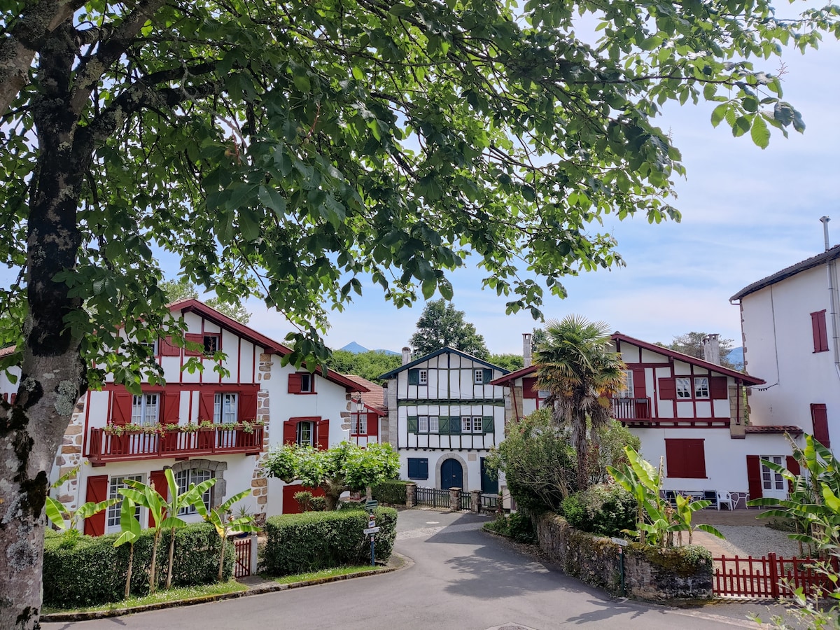 Isang kaakit - akit na apartment na may isang silid - tulugan na 40m2 na pinagsasama ang mga pakinabang ng isang prestihiyosong apat na star na tirahan ng Odalys at ang kaginhawaan ng isang komportableng flat kung saan mainam na mamalagi at tuklasin ang kalidad ng buhay at kultura ng Bansa ng Basque. Sa ika -1 palapag na may elevator, nag - aalok ito ng tanawin sa parke at kagubatan, at pinalawak ito ng terrace na 11m2 . Iniangkop ang dekorasyon para maramdaman mong komportable ka. Pribado at may bilang na paradahan sa basement.