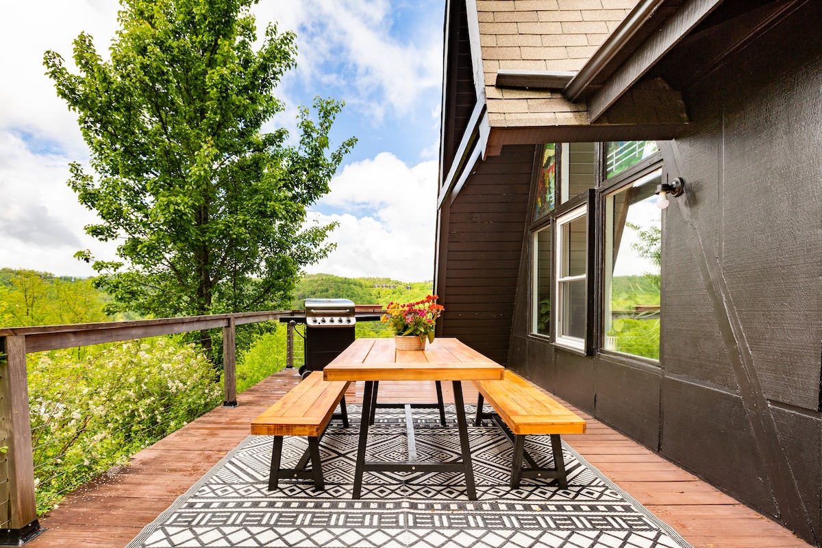 Matatagpuan sa ibabaw ng Chalet Village, nakatira ang Worth the Climb hanggang sa pangalan nito na may mga nakamamanghang tanawin ng Smoky Mountain, nakamamanghang pagsikat ng araw, at pagkakataon na makita ang mga wildlife tulad ng mga bear. Nagtatampok ang one - bedroom, pet - friendly cabin na ito na malapit sa Ober Gatlinburg ng pribadong hot tub at mapayapang paghiwalay na 3.7 milya lang ang layo mula sa downtown at 8 milya mula sa Pigeon Forge. Tinatangkilik din ng mga bisita ang pana - panahong access sa clubhouse pool para sa nakakapreskong paglubog pagkatapos ng mga paglalakbay sa bundok. Kailangang 21+ taong gulang para makapag - book. Puwede ang mga alagang hayop nang may bayarin.