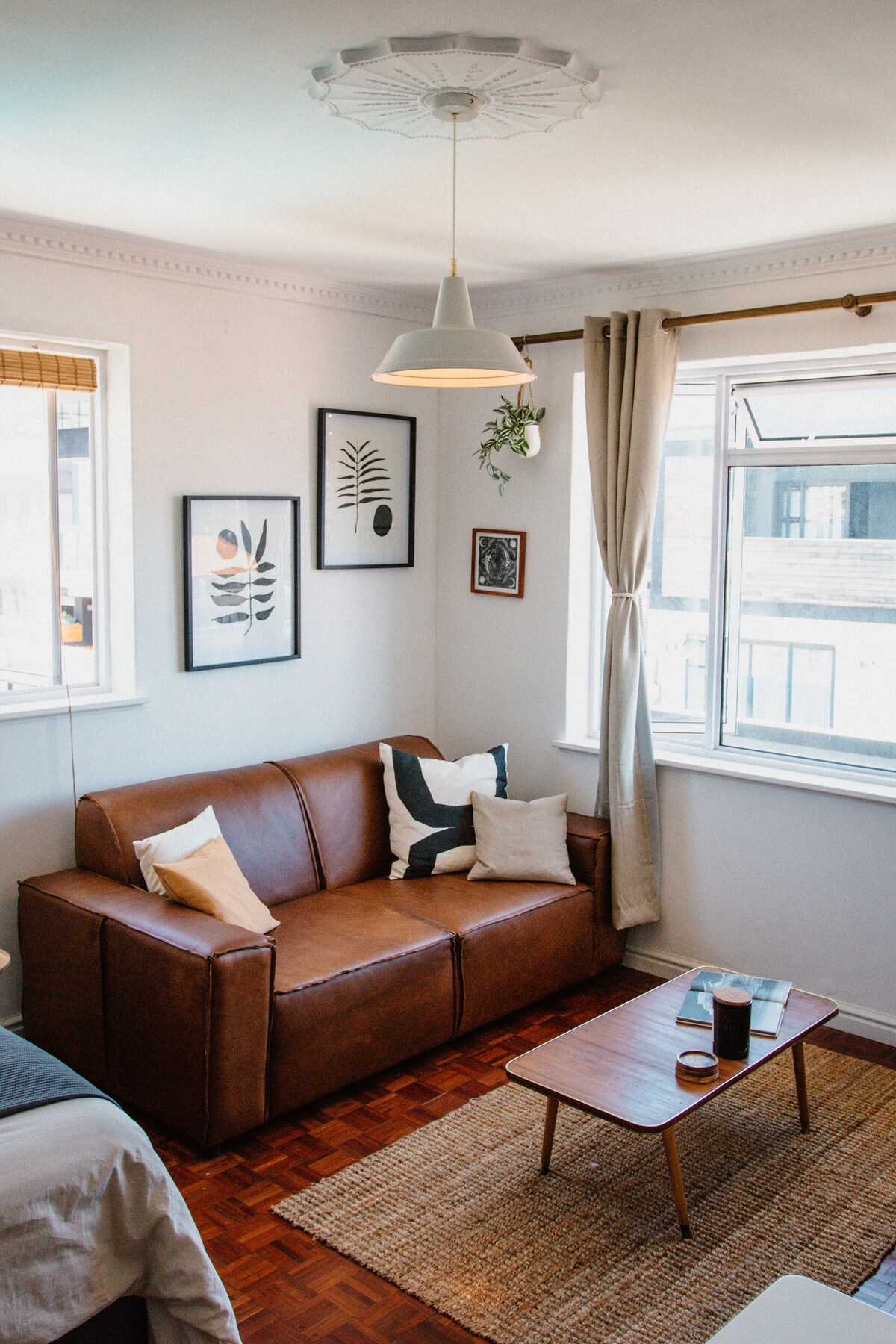 Ang parehong silid - tulugan ay humahantong sa mga balkonahe, ang mga tanawin ay kamangha - manghang. Nakakonekta kami sa isang 24 na oras na serbisyo sa seguridad na mag - escort sa iyo sa apartment kung ikaw ay darating sa bahay nang huli o nag - iisa. Available ang buong apartment. Buksan ang plan lounge dining kitchen at dalawang banyong en suite, entry area, at deck. Ako ay isang artist, kaya ang aking studio (kabaligtaran sa pagpasok ng apartment) ay mai - lock dahil gagamitin ko ito bilang isang storeroom. Matatagpuan ilang kilometro lamang sa kanluran ng Cape Town CBD, ang Fresnaye ay isa sa mga pinaka - mayaman na kapitbahayan ng lungsod. Ang loft ay isang maigsing lakad lamang mula sa mga high - end na kainan sa Sea Point. Pumunta sa Rock Tidal Pool ng Saunders sa maiinit na araw para sa nakakapreskong paglubog. Sa kasamaang - palad, mayroon lang kaming paradahan sa kalsada, pero 100m ang layo namin mula sa MyCiti bus stop at napag - alaman namin na karamihan sa mga bisita ay nakakahanap ng paggamit ng Uber, at pinaka - maginhawa. Kung mas gusto mo ang iniangkop na tour guide o shuttle service, maaari rin naming ayusin iyon. Tandaang may dagdag na muwebles sa labas na idaragdag sa deck bago ang pamamalagi mo. May aircon sa lahat ng kuwarto