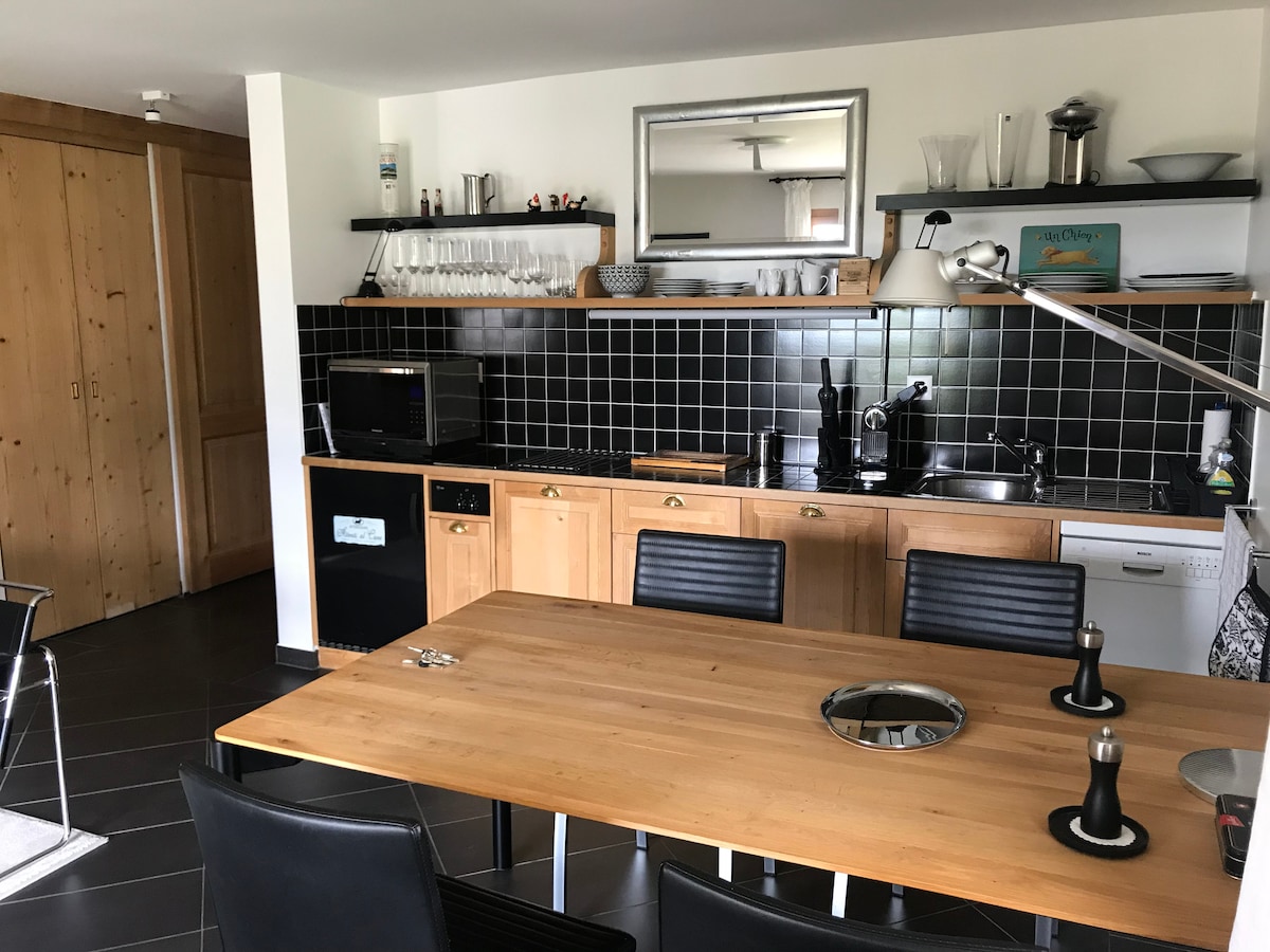 Naghahanap ka ba ng maganda at tahimik na lugar sa kalikasan kung saan walang kulang sa iyo at sa iyong mahal sa buhay? Pagkatapos ay i - book ang iyong marangyang apartment sa amin sa terrace house na may outdoor whirlpool sa ilalim ng bukas na bubong. Hindi pinapahintulutan ang anumang uri ng mga party dahil sa eksklusibong muwebles at nais na katahimikan. Posible ang mga late na pag - check in sa naunang pag - aayos at nagkakahalaga ng 20 CHF.