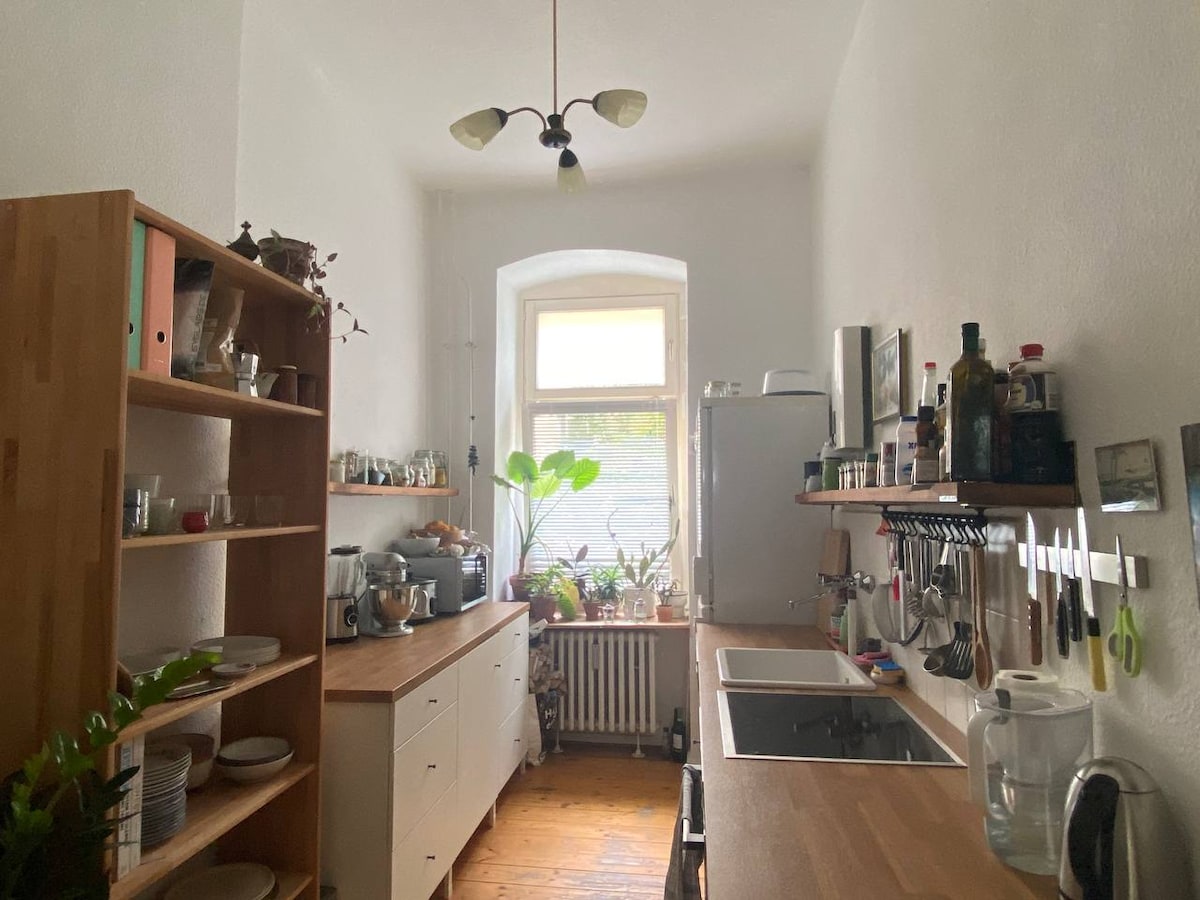 Malapit ang patuluyan ko sa Kastanienallee, sa ika -5 palapag nang walang elevator at magandang tanawin ng TV Tower. Mayroon kang magagandang tanawin at sunset sa ibabaw ng parke at sa roof tops sa pamamagitan ng 2 malaking bintana na may mga french balkonahe. Maraming bintanang nakaharap sa timog at balkonahe papunta sa likod - bahay (opisyal na balkonahe ng pagsagip sa apoy. Kaya siguraduhing huwag abalahin ang mga kapitbahay!) Ang Lugar ay puno ng mga bar, restawran at tindahan ng damit, at sa katapusan ng linggo ay may mga grocery at fleamarket na malapit.