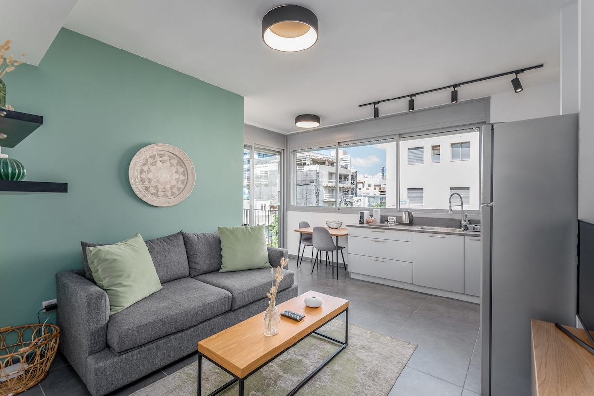 " May sukat sa loob ng apartment. " Ilang click lang ang layo ng tunay na karanasan sa Tel Aviv. Isipin ang iyong sarili sa gitna ng Tel Aviv, malapit sa mga trendiest spot sa lungsod. I - book ang lugar na ito at hindi mo na kailangang isipin (: Isa itong 1 silid - tulugan na Apt. na may kumpletong kusina, high - speed na wi - fi, sala, balkonahe, at nakakahikayat na shower. Mamamalagi ka nang 8 minutong biyahe mula sa beach at marami pang magagandang lugar sa Tel Aviv.