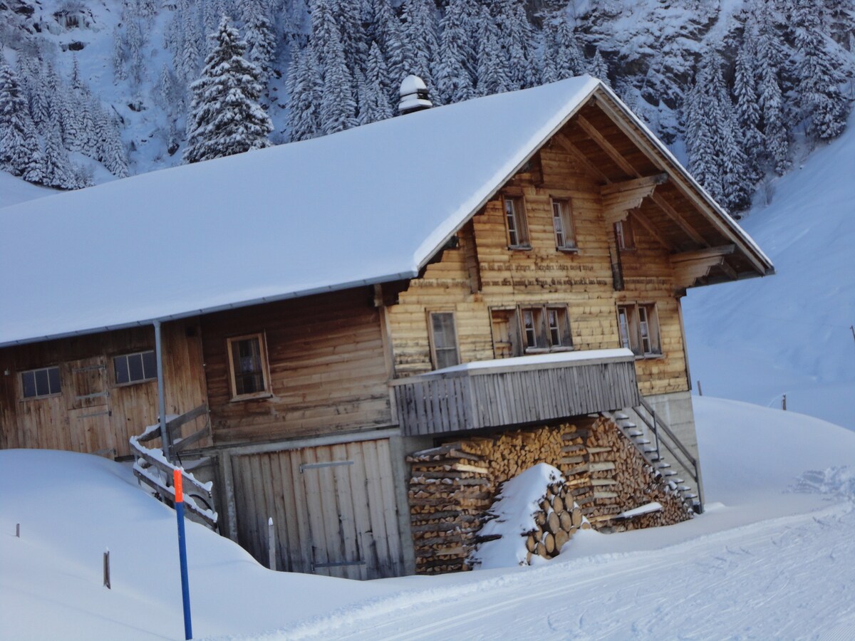 Isang lugar ng kapayapaan at pagpapahinga na may magagandang tanawin ng Blüemlisalp at mga bundok. Purong pagpapahinga sa iyong pintuan! Taglamig: Ilang minutong lakad mula sa bahay ang mga snowshoe trail at chairlift, na (sa magagandang kondisyon ng niyebe lang!) ay nag - aanyaya sa iyo na mag - ski at mag - sled. (maliit at tahimik na ski resort). May ski lift para sa mga bata. Tag - init: Hindi mabilang na pagkakataon sa pagha - hike para sa lahat ng antas. Mga talon at natural na kagandahan sa harap ng pinto!
