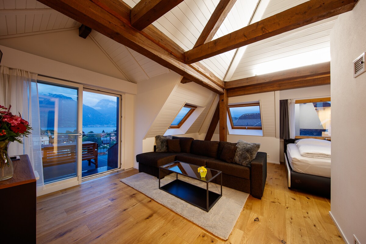 Para sa mga bumibiyahe nang mag - isa o kasama ang pamilya at ayaw nilang sumuko sa espasyo at estilo. Pinagsasama ng aming Junior Suite ang mapagbigay na kaginhawaan, mapagmahal na mga detalye at komportableng kapaligiran kung saan matatanaw ang lawa. Gusto mo mang magrelaks, magtrabaho nang may inspirasyon o magsaya nang magkasama sa Berner Oberland, makikita mo rito ang perpektong bakasyunan, siyempre kabilang ang aming napatunayan na hanay ng mga serbisyo at mga espesyal na karagdagan para sa iyong personal na pahinga na may estilo.