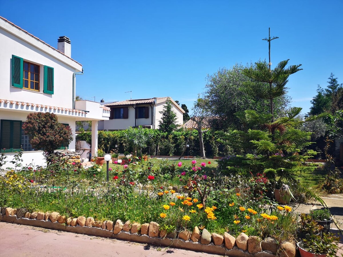 Matatagpuan ang kaakit - akit na studio annex 70m mula sa beach. Nasa pribadong patyo ito ng pangunahing tuluyan ng host. 13 km ito mula sa Cagliari at 20 km mula sa magagandang beach ng Pula. 2 higaan na may pribadong banyo, kusina at open space na sala na may coffee maker, microwave at refrigerator. Sa lugar ay may mga restawran, at mga bar sa beach na may live na musika (mula Hunyo hanggang Setyembre). Ilang hakbang lang ang layo ng Supermarket sa botika. 200m ito mula sa mga hintuan ng bus.
