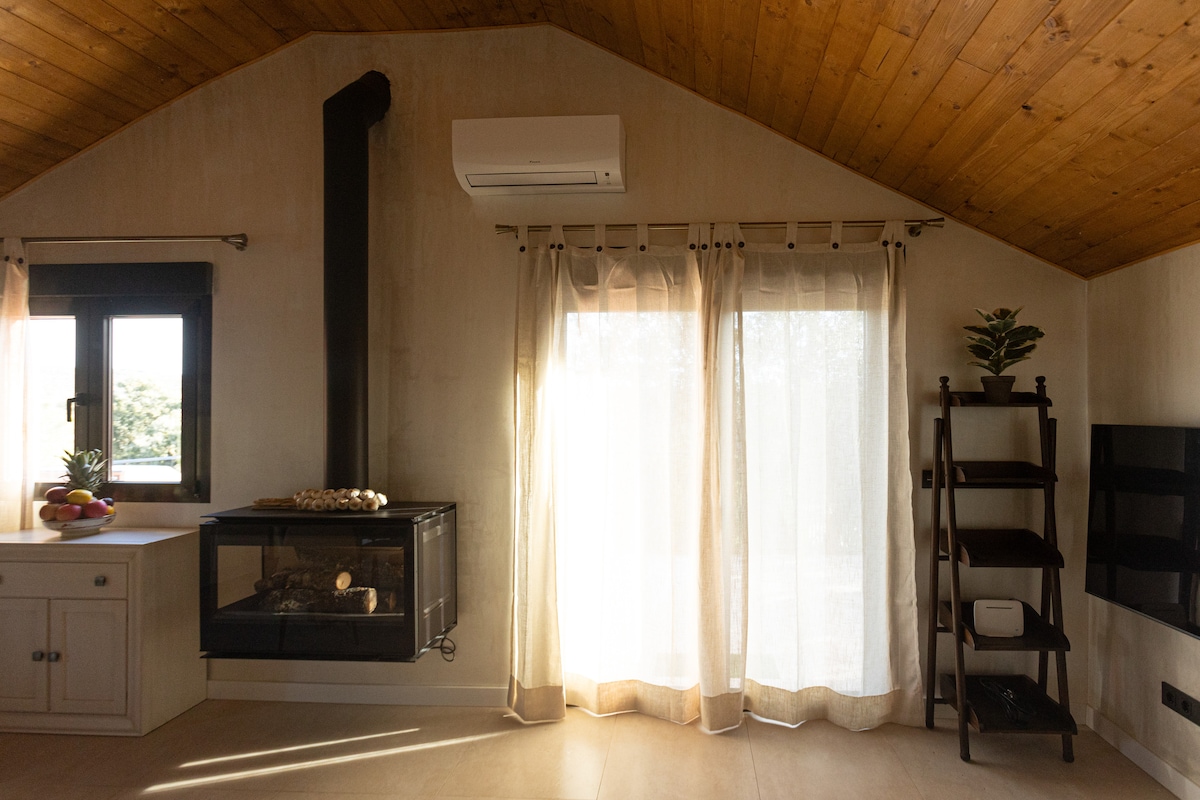 Isang kahoy na bahay na nilikha sa estilong stilt na may hangaring hindi makaabala sa mga batong naninirahan sa lupain. Mayroon itong double room, kumpletong banyo, kusina, dining room, sala, terrace, hardin, at magagandang tanawin ng Cuenca Alta del Manzanares Regional Park.
