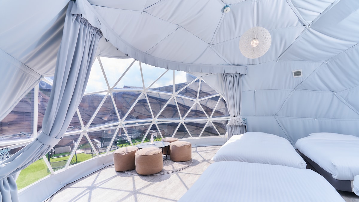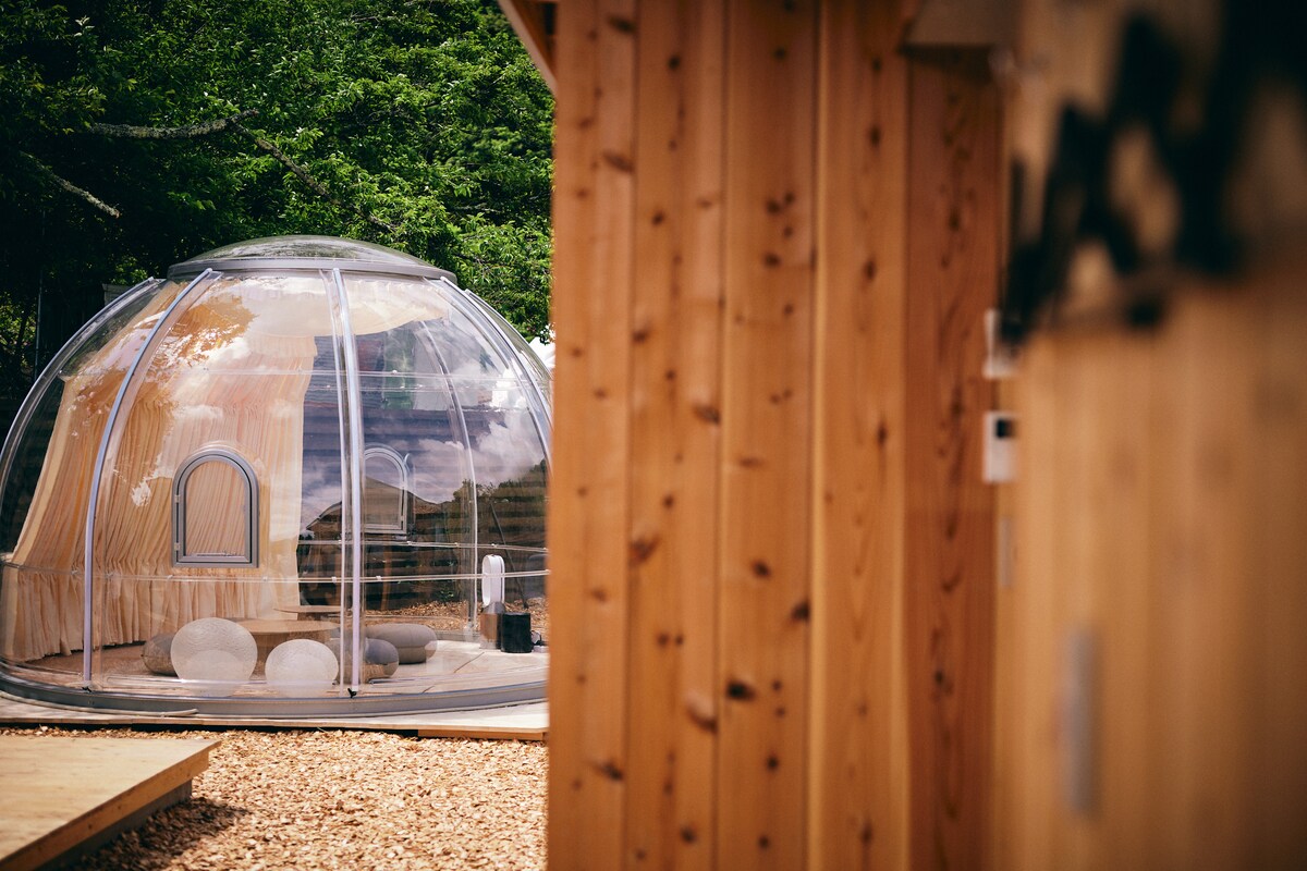 Tuluyan na may estilo ng hotel at karanasan sa labas sa isang naka - air condition na dome tent