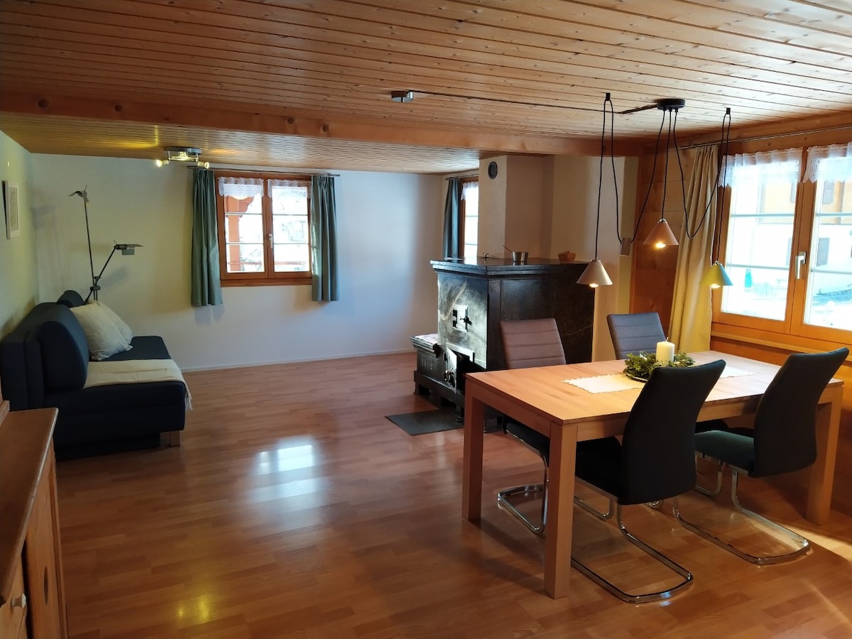 Nasa ikalawang palapag ng aming bahay ang apartment at maayos itong pinangalagaan at ipinanumbalik sa istilong kahoy. Simple at maayos ang mga gamit sa tuluyan kaya komportable ka pa rin kahit malayo ka sa sarili mong tahanan. Maluwag ito at may malaking balkonahe na may magagandang tanawin ng Prättigau kung saan matatanaw ang Klosters sa likod ng lambak. Itinayo ang bahay sa timog na dalisdis at tinatamasa ang maraming oras ng sikat ng araw. Garantisadong mapayapa at tahimik dito! Pinakakomportable para sa 4 na bisita.