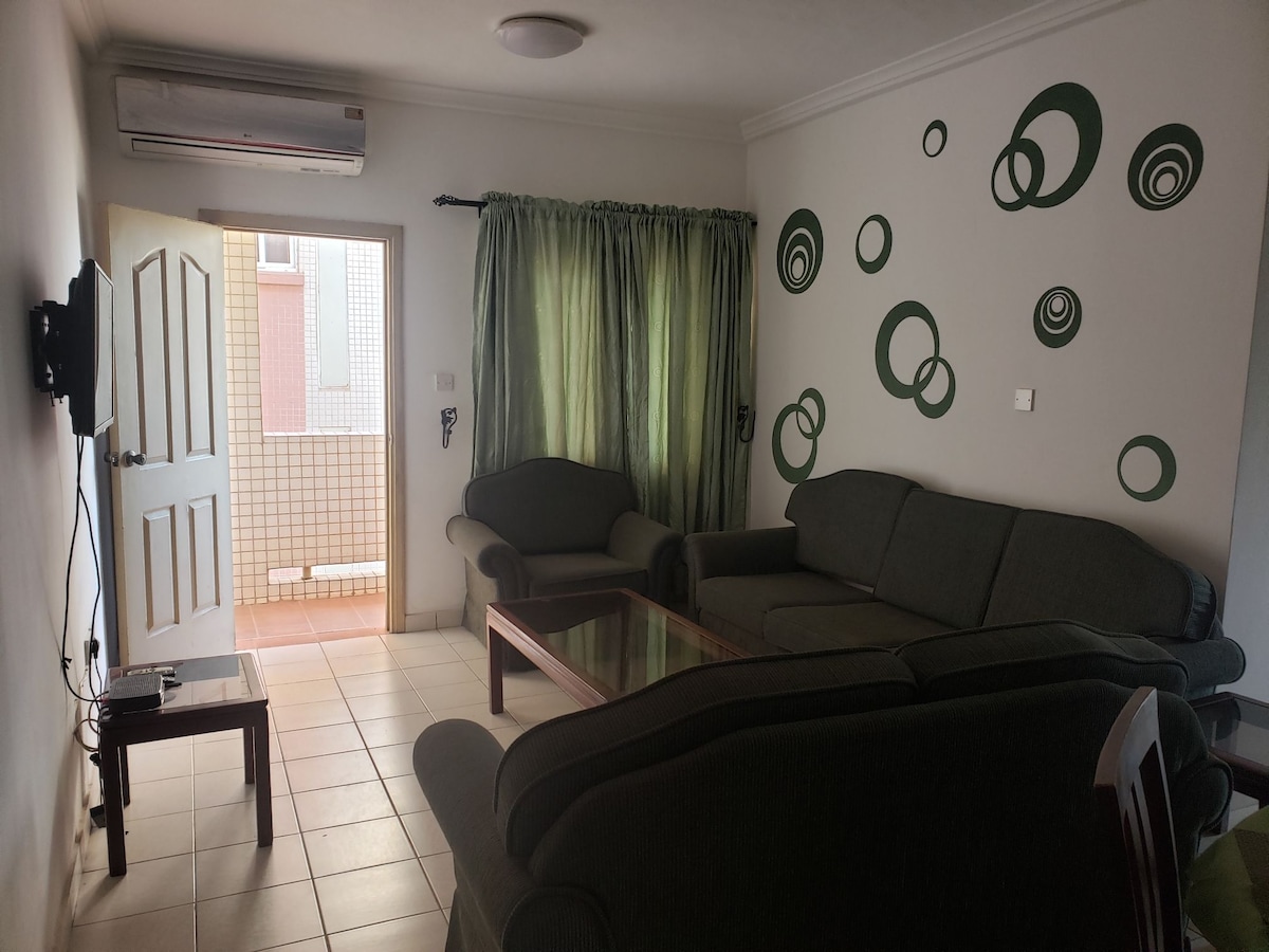 Magrelaks kasama ang buong pamilya sa magandang marangyang apartment na ito na may 2 kuwarto sa isang gated na komunidad na may 24 na oras na seguridad. Matatagpuan sa isang perpektong lokasyon, ang mga bisita ay 30 minuto lamang mula sa Kotoka International Airport at isang maikling biyahe mula sa Achimota Mall, Melcolm Shopping mall. at Palace shopping mall. Idinisenyo para sa kaginhawaan, ang apartment na ito ay talagang magiging isang tahanan na malayo sa bahay