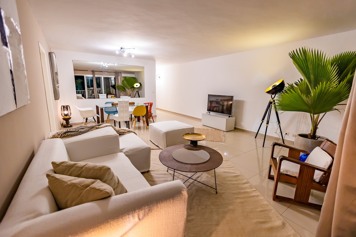 Brand New Building -Magkakaroon ka ng magandang panahon sa komportableng tuluyan na ito. Mabigat na binabantayan ng 24 na oras na tagapag - alaga at gated na paradahan. Maluwag na 2 silid - tulugan/ 2.5 paliguan Condo. Nasa maigsing distansya papunta sa sikat na water park na Club Saoti na may mga pool, magagandang restaurant, yoga, at workout center. Walking distance papunta sa beach para sa mga sariwang niyog, 5 minuto papunta sa airport, mga grocery store, at mga lokal na pamilihan. May aircon ang bawat kuwarto.