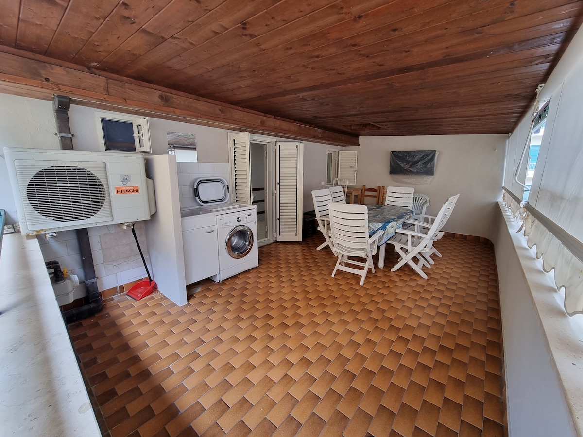 Pribadong Bahay na may tanawin ng dagat na 180°. Perpekto para sa mga pamilya (maximum na 5 tao) o mag - asawa. Kasama ang mga serbisyo: • Pribadong paradahan na may awtomatikong gate • Direktang access sa beach (3 minutong lakad) at sa makasaysayang sentro. • 2 badroom: king size at twin room. • Banyo na may shower. Kasama ang shampoo • May kasamang mga sapin at tuwalya • Kusina na may lahat ng kaginhawaan at kagamitan • Tanawing dagat ng terrace na may solarium BUWIS SA LUNGSOD NA BABAYARAN NANG LOKAL
