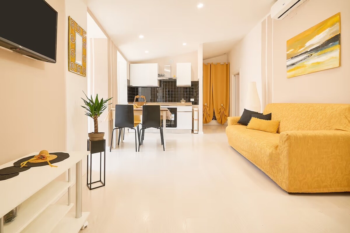 Magandang apartment sa ikalawang palapag, na - renovate lang. 5 minutong lakad mula sa makasaysayang sentro at 10 minutong lakad mula sa mga beach ng lungsod. May mga pangunahing negosyo sa malapit. - silid - tulugan na may queen size at single bed - kusina na may mga induction plate, microwave, refrigerator at armchair bed. - dalawang balkonahe - banyo - may mga sapin, tuwalya, at hairdryer. - Capsule, moka, at crockery coffee maker.