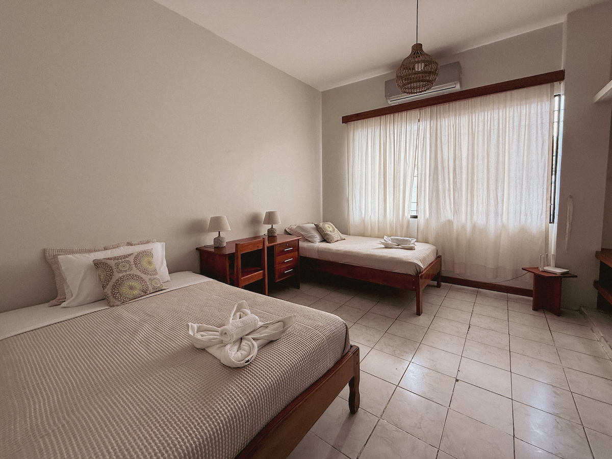 2 Silid - tulugan na Bahay Ang Galapagos Pearl ay isang kaakit - akit na retreat ng hotel sa isang tahimik at residensyal na kapitbahayan sa Puerto Ayora, Santa Cruz Island. Matatagpuan ito isa 't kalahating bloke ang layo mula sa Charles Darwin Avenue, ang pangunahing kalye ng turista ng downtown. Ito ay isang maginhawang maigsing distansya mula sa gitna ng bayan at isang bloke at kalahati ang layo mula sa dagat. Nag - aalok ito ng mapayapang ambiance at napapalibutan ito ng mga luntiang hardin ng Galapaganian.