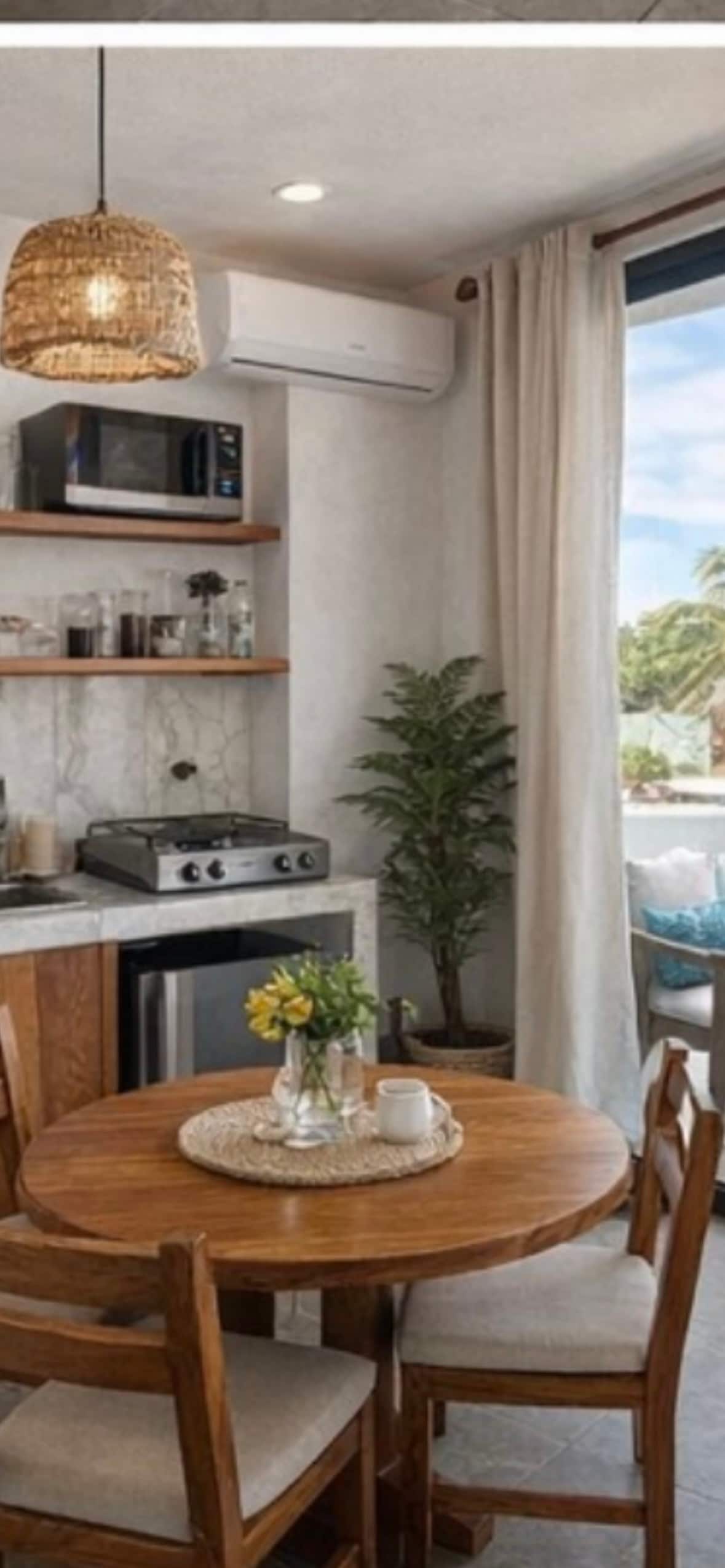 Matatagpuan sa terrace ng isa sa mga pinakamataas na gusali sa isla, makakakita ka ng magandang tanawin sa buong araw. Napakadaling hanapin, sa pangunahing daanan ng Baltra. Napapalibutan ng mga restawran, tindahan, at ATM ng Banco Pichincha sa tapat ng kalye. 4 na bloke mula sa Terminal Terrestre at 3 bloke mula sa Mercado Municipal at bus stop papunta sa mga rural na lugar. Privacy sa sarili mong open terrace na may exercise equipment, dining room at kusina na may mga kubyertos. Perpekto para sa mga pagpupulong.