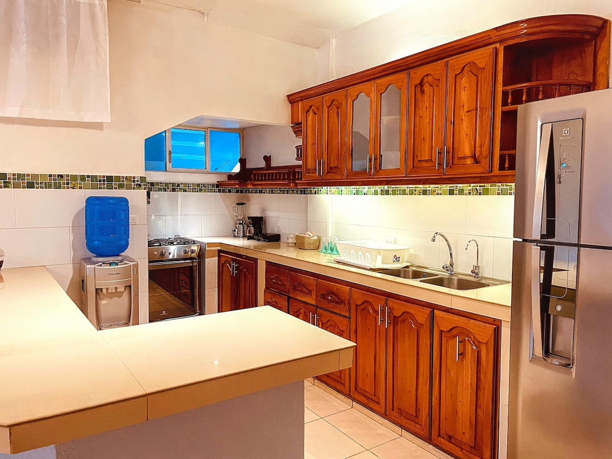 SUMAQ HOUSE, sa isla ng Galapagos Santa Cruz ang pangalawang pinakamalaking, Puerto Ayora, village, ito ay matatagpuan sa gitna ng kapuluan malapit sa pangunahing paliparan ng Galapagos na nasa isla ng Baltra. Bagong apartment sa ikalawang palapag na may maximum na kapasidad na 7 tao, mayroon itong kusina, sala at silid - kainan, dalawang silid - tulugan, isa na may pribadong banyo, aparador, king size bed, AC, balkonahe na tinatanaw ang parke ng kapitbahayan, ang pangalawang silid - tulugan, na may isang aparador, dalawang higaan ng dalawang upuan bawat isa