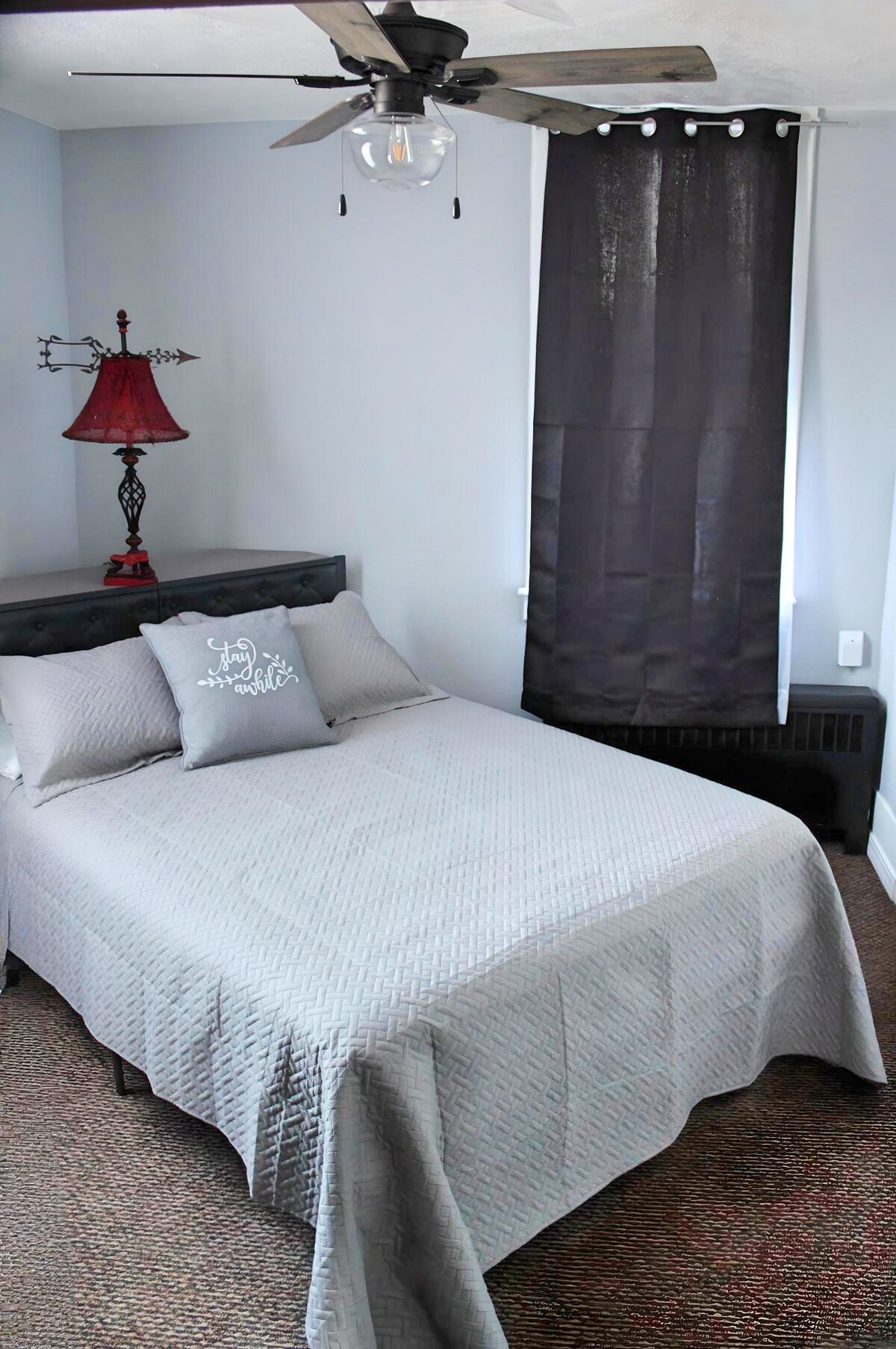 Suite Victory #4 - Maganda ang ayos na apartment sa Main St. kung saan mo mismo gustong makasama ang Nakareserbang Paradahan. Kainan, libangan, at pamimili sa labas lang ng iyong pintuan. Buksan ang floor plan na may magagandang tanawin ng downtown Main Street. King bed. Double sink vanity at malaking walk - in shower. Ang kusina ay may isla, quartz countertop, at mga bagong kasangkapan. Stackable washer at dryer sa loob ng unit. Sa itaas ng Charlie's Place Eatery sa Main Street. HANGGANG 2 TAO. BINAWALAN ANG MGA ASO.