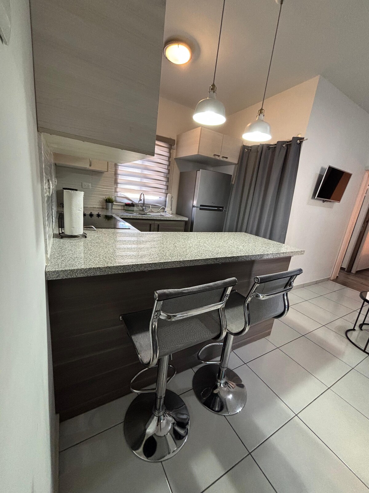 Ang natatanging tuluyan na ito ay may sapat na espasyo para sa tahimik na pamamalagi kasama ng iyong mga mahal sa buhay. Idinisenyo para sa iyong kaginhawaan na may maraming espasyo at mga accessory para maging komportable ka, na may internet, tv, sofa bed, malawak na pamamalagi at dalawang silid - tulugan. Malapit sa mga lugar na interesante tulad ng American Consulate, Golf Club, at mga ospital. May supermarket sa ibaba, cafeteria, istasyon ng gasolina at bangko. Para sa mga pamamalaging mahigit sa 5 gabi, may idinagdag na welcome bottle ng wine!