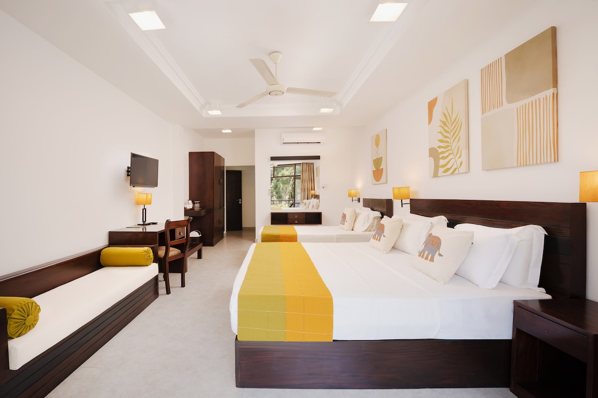 Ang pinaka - sentral na lokasyon sa tabing - dagat sa Hikkaduwa beach. Ang Amaroo ay isang oasis ng mga mahilig sa karagatan, na matatagpuan sa gitna ng mga maaliwalas na palad at surf break. Maliwanag at maaliwalas ang kuwarto na may komportableng king size na higaan, AC, ceiling fan, at ligtas. Tandaang hindi namin magagarantiyahan ang mga kuwarto sa una o ikalawang palapag, depende ito sa availability sa oras ng pag - check in. Ang mga kuwarto ay may bahagyang iba 't ibang mga configuration, ngunit ang lahat ng parehong mga amenidad. Isa kaming 14 na kuwartong hotel na may bar at restawran.