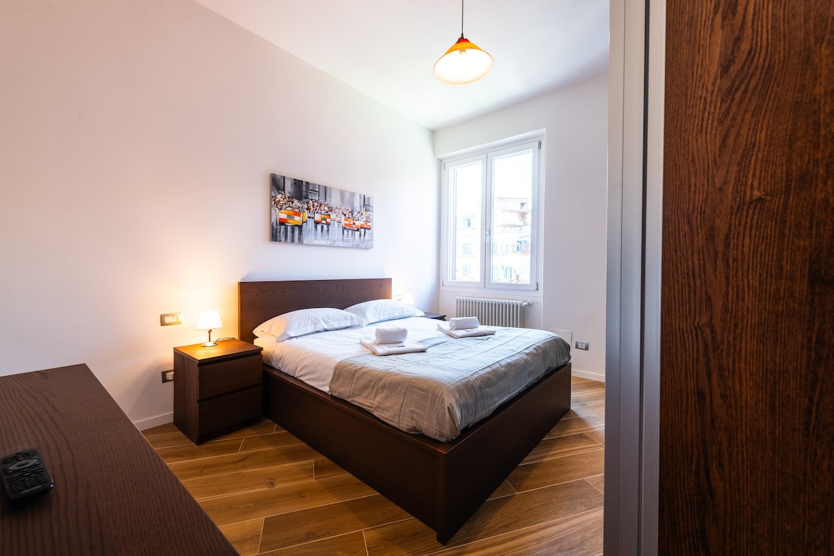 Ilang hakbang mula sa Aurelian Walls, Museum of Walls at sa lugar ng sinaunang Appia at Colosseum. Sa lugar ng San Giovanni, isang kapitbahayan na mayaman sa kasaysayan at kultura, na may mahusay na koneksyon at perpekto para sa pagtuklas sa Rome ,ngunit nang walang pagmamadali ng mga pinaka - turistang kapitbahayan. May magagandang restawran para tikman ang tradisyonal na lutuing Roman at pandaigdigang lutuin. Isang bagong apartment sa ikalawang palapag na may elevator, bukas na espasyo na may A/C, smart TV, high - speed Wi - Fi at mga USB outlet, nilagyan ng espasyo sa kusina, washer - dryer.