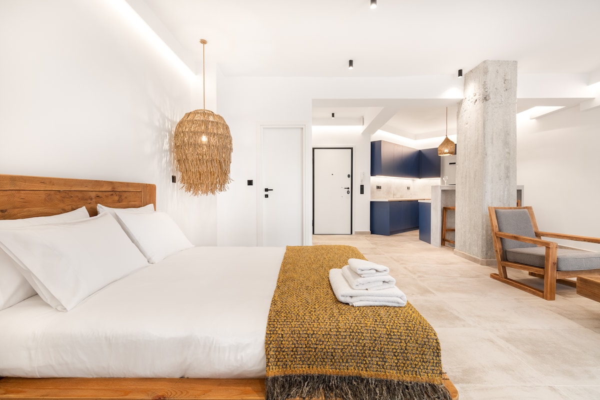 Ang bago at modernong apartment na ito sa Gazi area ay magwawagi sa iyo kaagad dahil sa lokasyon nito, tungkol sa mga pagpipilian sa mga cafe, restawran, nightlife, at pamamasyal. Magrelaks sa king - size bed ng natatanging open space na ito, na bagama 't bukas, ay kailangang mag - alok ng privacy na may natatanging estilo na sinamahan ng mga eleganteng pagpipilian ng mga muwebles at dekorasyon. Ang tanawin ng lungsod mula sa napakalaking bintana sa housefront, ay tiyak na magpapasabik sa iyo.