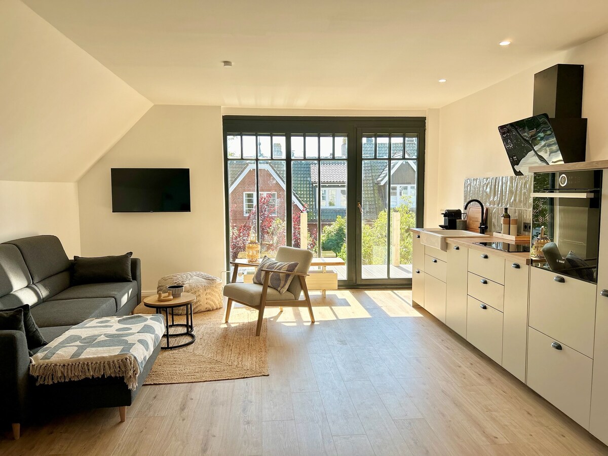 Napakagandang lokasyon, sa pagitan ng kagubatan, mga parang at 250 metro ang layo ng sandy beach, nakatago ang apartment na natapos noong unang bahagi ng 2025 na may espesyal na arkitektura at minimalist na disenyo. Kung gusto mong makinig sa tunog ng dagat (sa silangan ng hangin), makinig sa reputasyon ng isang pulang tao (sa kanlurang hangin), humanga sa pagsikat ng araw sa Baltic Sea (mula sa silid - tulugan) at tuklasin ang magandang tanawin sa pagitan ng Schlei at Geltinger Bay kung saan matatanaw ang Denmark, ito ang lugar na dapat puntahan.