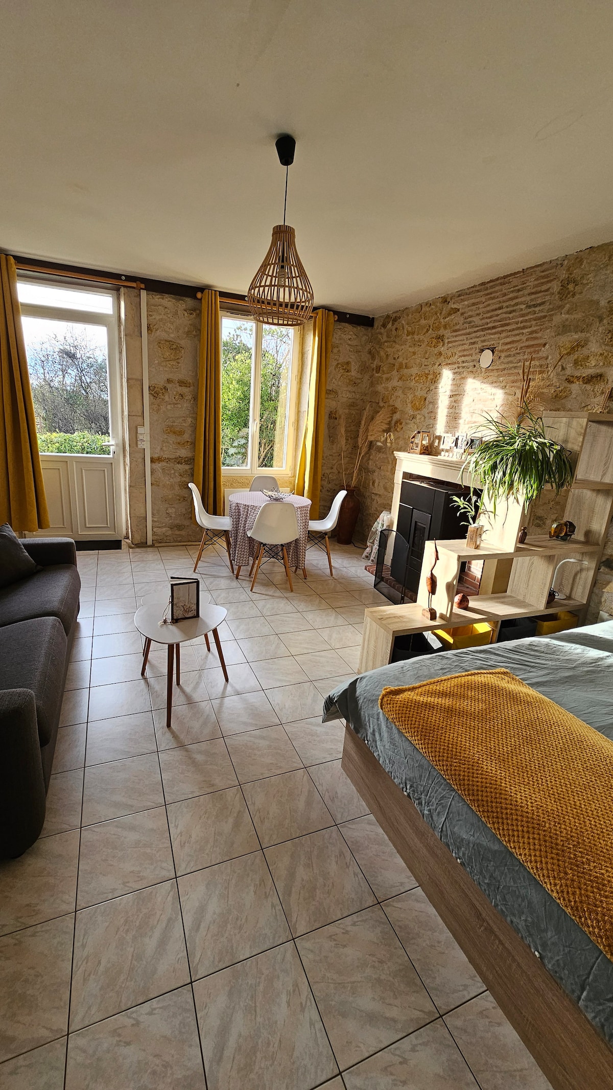Bienvenue à SANCOINS dans le Cher en Berry, nous mettons à votre disposition un très beau studio climatisé 2/4 personnes (1 couple et 2 enfants ou 2 couples ou 4 amis) nous vous accueillons dans notre grande maison de ville place du commerce à Sancoins. Ce studio dispose d'un lit de 140 X 190, d'un canapé clic-clac de qualité pour 2 enfants selon vos choix, coin cuisine et coin repas très bien équipés, totalement indépendant, les escaliers ne conviennent pas aux personnes à mobilité réduite.