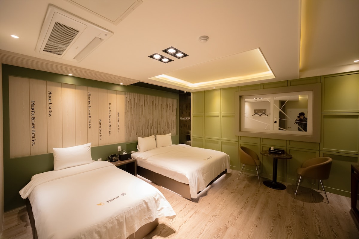 Karaniwang bilang ng tao: 2 tao/maximum na bilang ng tao: 2 tao Check - in: 3pm/Check - out: 11am * * * Para sa mga diskuwento at higit pang impormasyon, hanapin ang 'Lyricistic Hotel Cheongju' sa berdeng window. [Mga Tampok ng Kuwarto] WiFi/Air conditioning. Heating/Table/Sofa/Smart TV/Netflix/Queen bed/Duck down duvet/Refrigerator/Nespresso coffee/Capsule coffee/Mineral water/Wine opener/Cell phone charger [Mga Tampok ng Banyo] Mga amenidad sa koleksyon ng London (shampoo, conditioner, body wash)/Peter Thomas lotion/sabon/comb/shower towel/towel/gown/hair dryer/cell phone charger [Pakitandaan] Hindi pinapahintulutan ang mga alagang hayop. Hindi paninigarilyo ang lahat ng bahagi ng property - 200,000 bayarin sa paglilinis ng kuwarto ang sisingilin para sa paninigarilyo - Nasa rooftop floor ang paninigarilyo Available ang paradahan para sa 5 kotse sa site ng hotel/Mga oras ng paradahan sa kalsada sa likod ng site ng hotel (mga araw ng linggo: 18:00 - 7:00, katapusan ng linggo: libre)/1 araw na bayarin sa paradahan (8,000 KRW) kapag ginagamit ang pampublikong paradahan ng paglilipat sa terminal ng bus ng intercity (naihatid ang resibo)