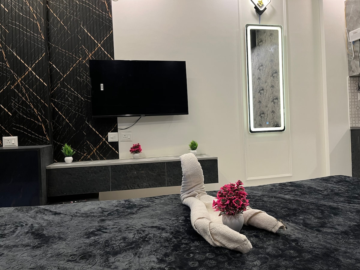 Maligayang Pagdating sa Royalty ni Skyview sa Supernova! Matatagpuan sa ika -39 palapag ng isa sa pinakamataas na gusaling may halo - halong gamit sa India, nag - aalok ang modernong studio apartment na ito ng nakamamanghang bakasyunan sa itaas ng lungsod. May mga nakamamanghang tanawin ng Ilog Yamuna, Sunset, at mga nakakasilaw na ilaw ng lungsod. May maayos na bentilasyon sa sikat ng araw sa umaga. Mainam ang aming tuluyan para sa mga mag - asawa, kliyente sa negosyo, solong biyahero, o sinumang naghahanap ng tahimik na bakasyunan.