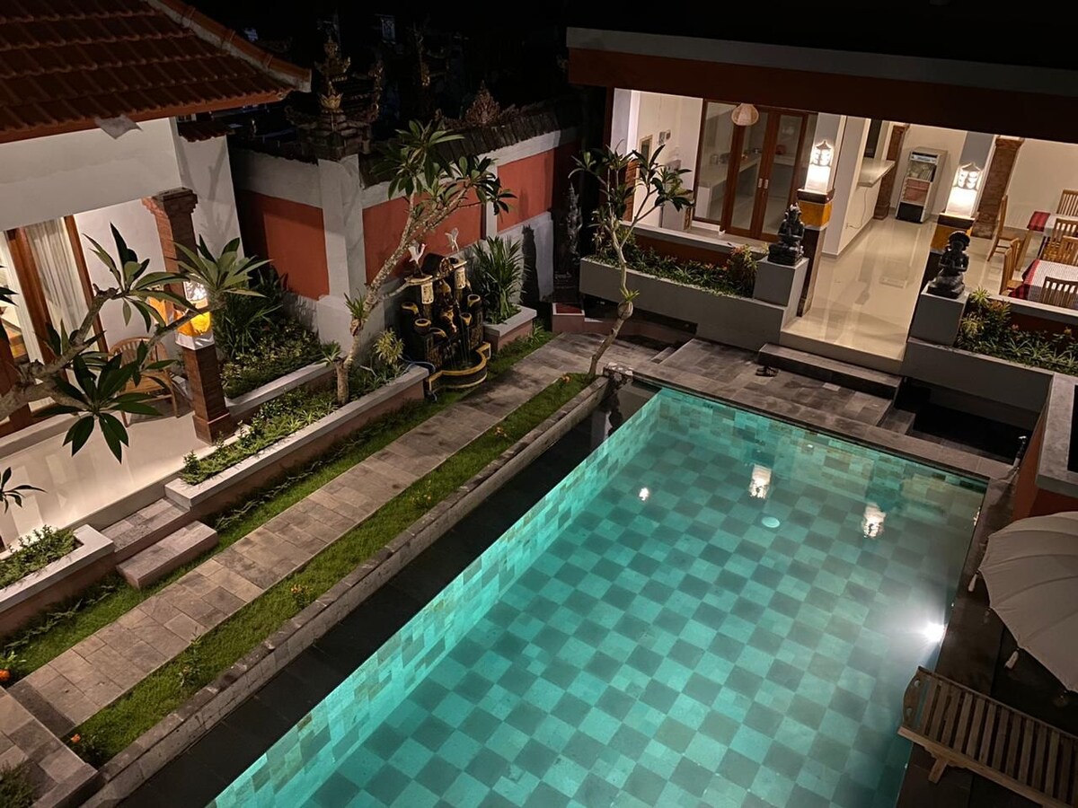 Bumibiyahe ka ba kasama ng grupo o pamilya? Puwede kaming tumanggap ng hanggang 14 na bisita. Kung naghahanap ka para sa isang lugar na malayo sa pagmamadali at pagmamadali ngunit malapit sa Ubud, ang aming villa ay para sa iyo! Ang talon ng Tegenungan ay 10 minuto lamang, ang Kemenuh Butterfly Park ay 5 minuto lamang, ang Ubud market ay nasa paligid ng 20 minuto. Ang tahanan ng Bali United Kapten I Wayan Dipta Stadium ay 15 minuto lamang. Magbigay: - Pribadong pool - Libreng WiFi - Pribadong banyo na may shower na may mainit na tubig - Pool view room na may AC - Magiliw at KAPAKI - PAKINABANG na may - ari/staff