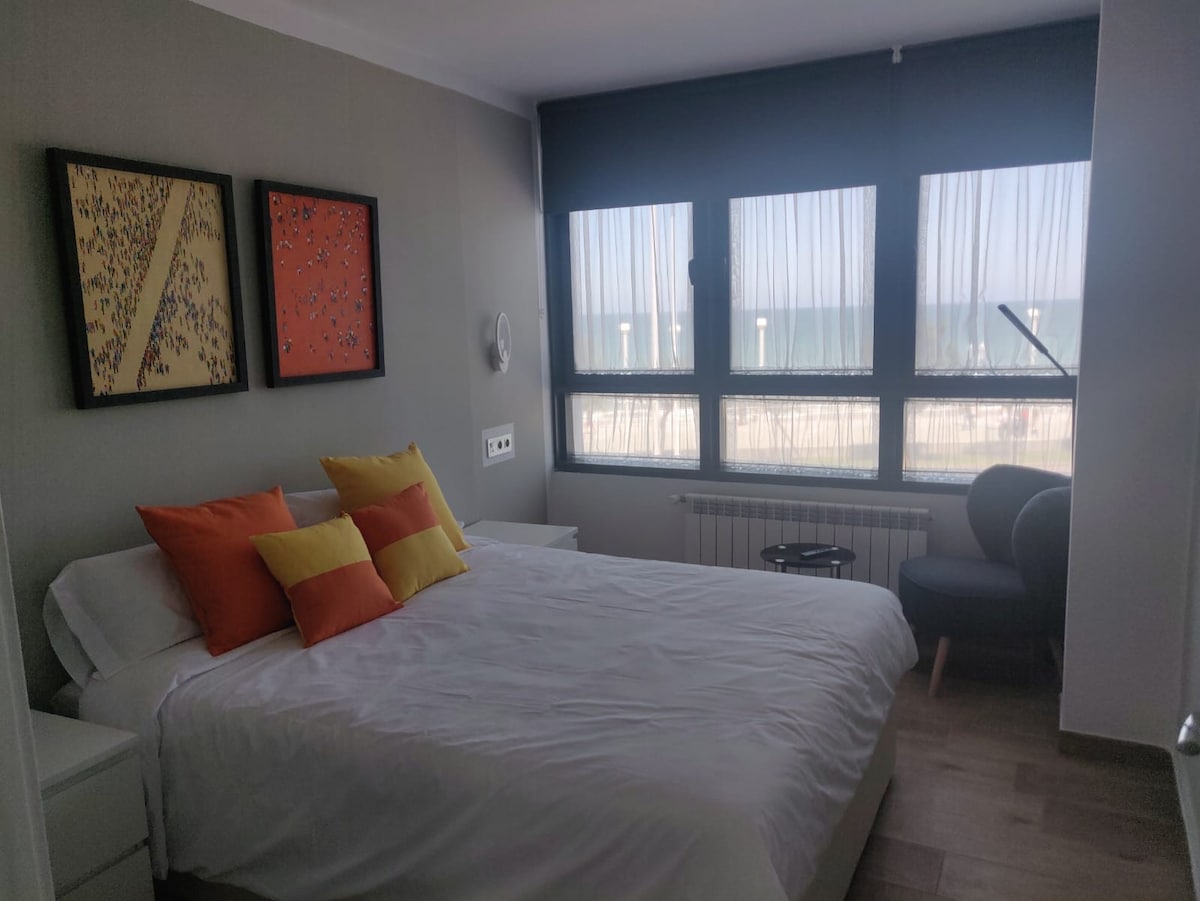 Bagong inayos na apartment sa Gijon Beach, sa harap ng hagdan 10. May bukas at kumpletong kusina sa apartment ( washing machine, dishwasher, microwave...). Kuwartong may TV at cable channel, sofa bed, malalaking bintana kung saan masisiyahan ka sa tanawin ng beach. Kuwartong may double bed, built - in na aparador, maliit na lugar para sa pagbabasa. Banyo na may bintana, malaking shower na may screen, lababo, towel rack at toilet na may bidet.