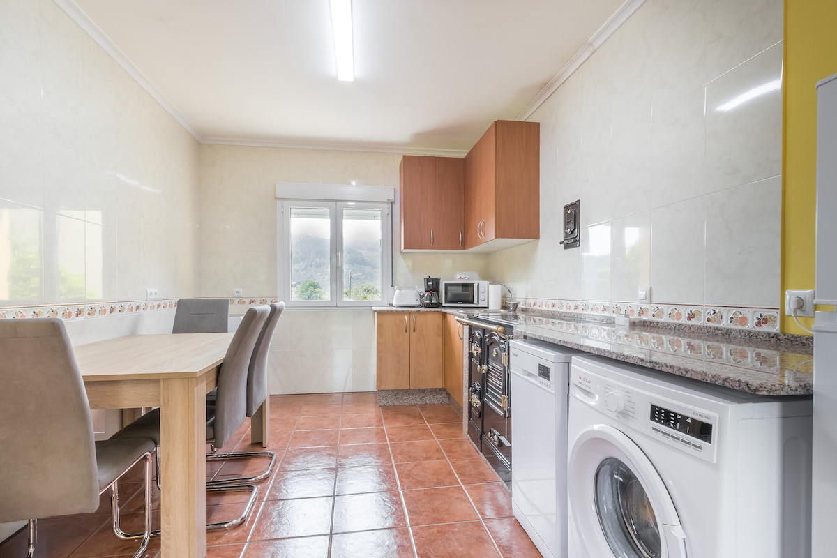 Nuestra relajante y tranquila casa esta situada a 12 km de la entrada de Gijon y 13 de Oviedo En una zona totalmente rural ,tenemos vacas,hórreo, en los exteriores además de la zona de mesa y bancos de debajo del hórreo,tenemos una cocina comedor "l'ayalga"equipada con:vitrocerámica portátil, microondas, nevera, alacena con todo tipo de menaje,agua caliente,fregadero ,mesa y sillas.Todo este equipamiento se puede utilizar también para cocinar en la zona de debajo del horreo. VV2300AS