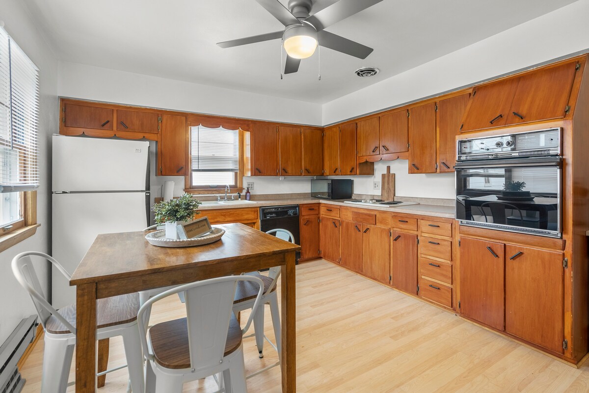 Nag - aalok ang bagong - update na espasyo sa pangunahing palapag na ito ng 1,800 talampakang kuwadrado ng espasyo para masiyahan. Dalhin ang iyong pamilya, o ang iyong propesyonal na team sa trabaho, at tangkilikin ang privacy ng 3 silid - tulugan, 2 buong paliguan, kalahating paliguan at lugar ng paglalaba sa labas mismo ng kusinang kumpleto sa kagamitan. Nag - aalok ang pampamilyang kapitbahayan ng madaling access sa mga walking at bike trail. Pupunta ka ba sa isang business trip? Mabilis at maaasahan ang aming wifi. Nag - aalok ang deck area ng mga upuan para magrelaks at mag - ihaw. Nangangailangan ang tuluyan ng pag - navigate ng tatlong hakbang hanggang sa beranda.