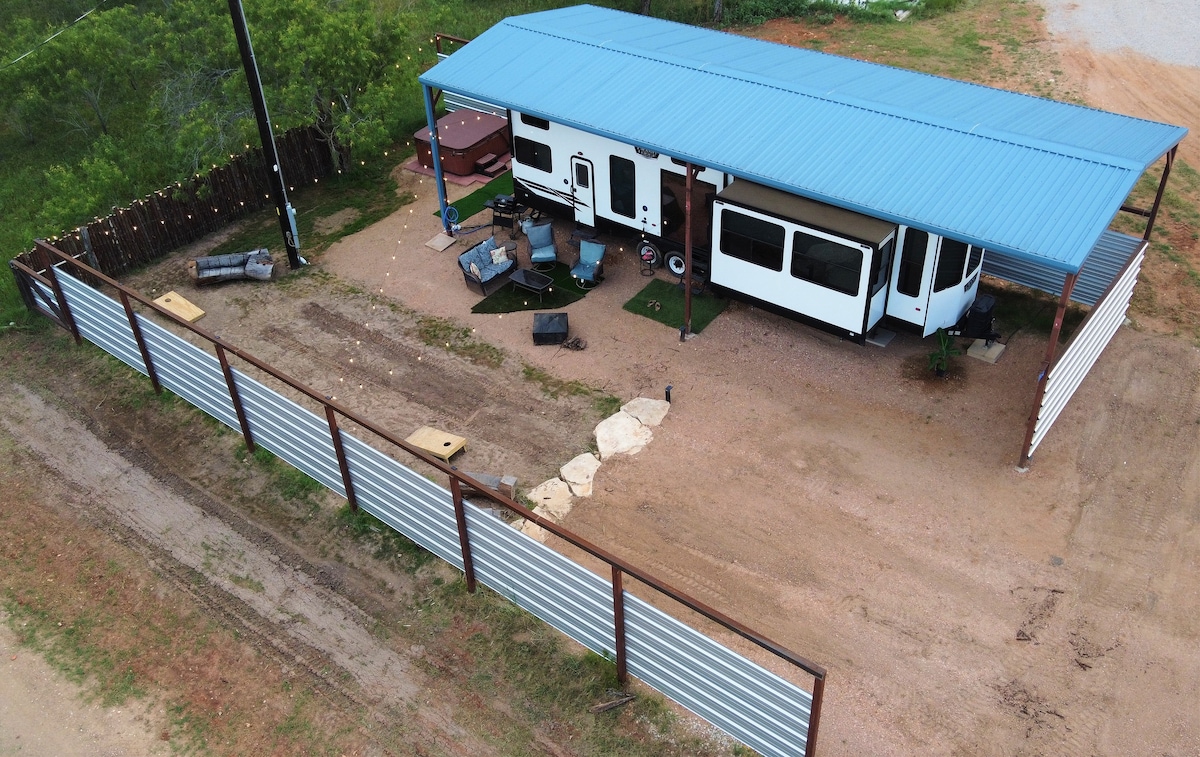 Maligayang Pagdating sa Blue Top Stay - Naghihintay ang iyong Hill Country Adventure! RV (Salem Grand Villa 42FLDL, google floorplans) 5 higaan w/bakod sa privacy na matatagpuan sa 290 wine trail, malapit sa pagtikim ng mga kuwarto at wala pang 3 milya mula sa downtown. Hot tub, high - speed internet, butas ng mais, fire pit at grill. Tangkilikin ang karangyaan ng pagiging nasa mapayapang kanayunan habang ilang sandali ang layo mula sa bayan, na nag - aalok ng pinakamahusay sa parehong mundo. Mainam para sa mga pamilyang naghahanap ng komportableng pamamalagi. Magtanong tungkol sa aming mga opsyon para sa pangmatagalang pamamalagi.