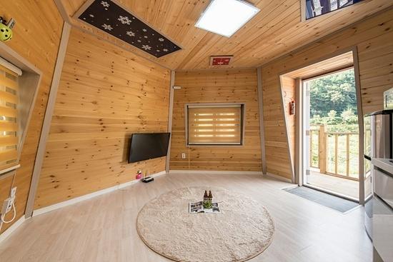 Humigit-kumulang 15 pyeong ang laki ng indoor space at binubuo ito ng 1 kuwarto, 1 banyo, kusina, at sala. May malawak na deck na ginagamit para sa sahig, at may nakahandang hapag‑kainan din sa deck na hiwalay sa hapag‑kainan sa loob, kaya madali mo itong magagamit kapag gumagamit ng barbecue. May mga lambak at bundok sa paligid ng bakuran ng gusali, kaya masisiyahan ka sa tanawin at sa tunog ng tubig at mga ibon. Masisiyahan ka sa paglanghap ng sariwang hangin. Magandang paglalakbay ang pagdaan sa hindi sementadong kalsada papunta sa pasukan ng Samdobong, na tinatayang 20 minutong lakad mula sa bed and breakfast na ito. * Isang team lang ang puwedeng gumamit nito. * Ito ang pinakamagandang lugar para sa pagpapagaling, kaya nagsisikap kami na mapanatili ang kalinisan.