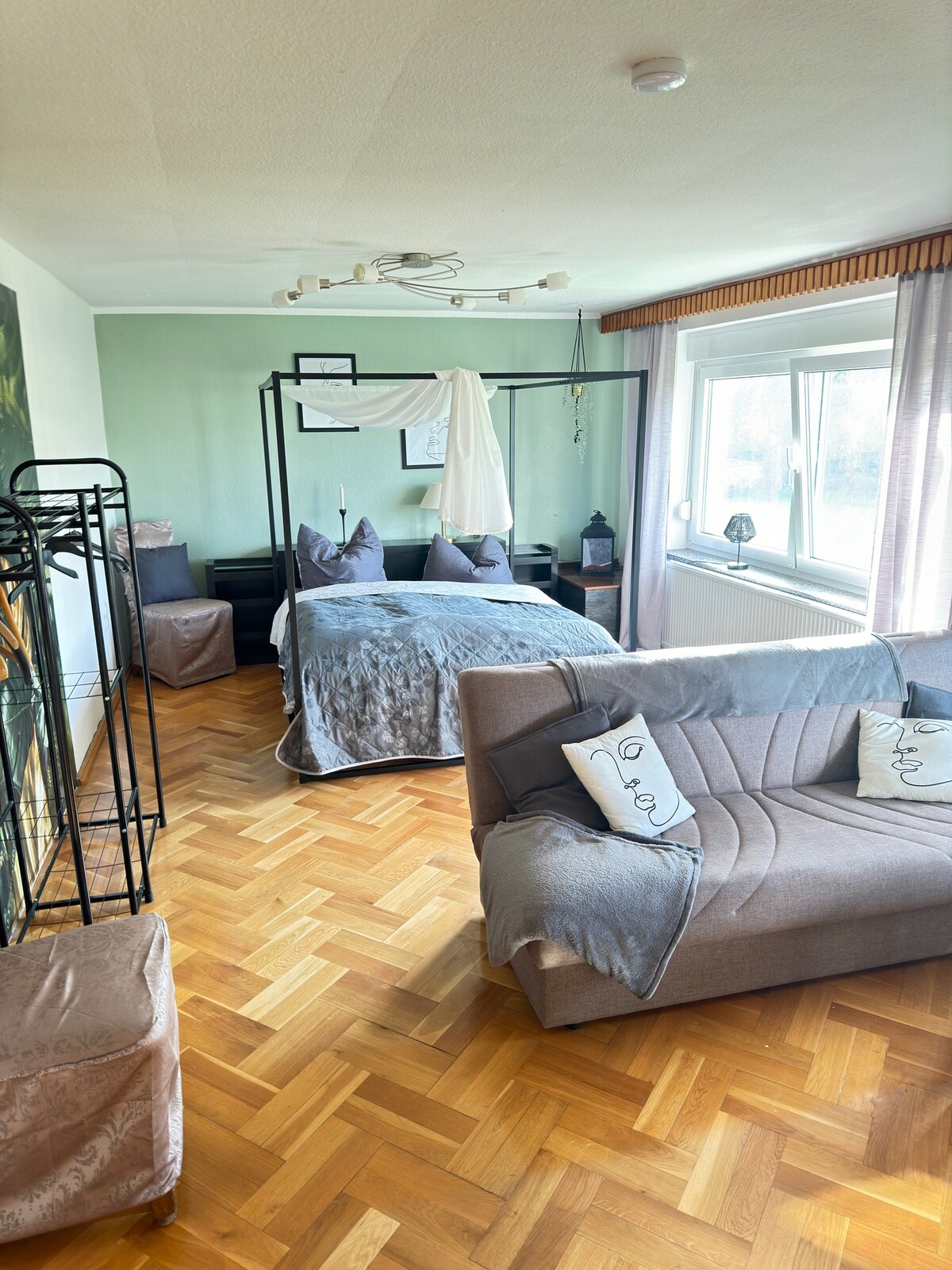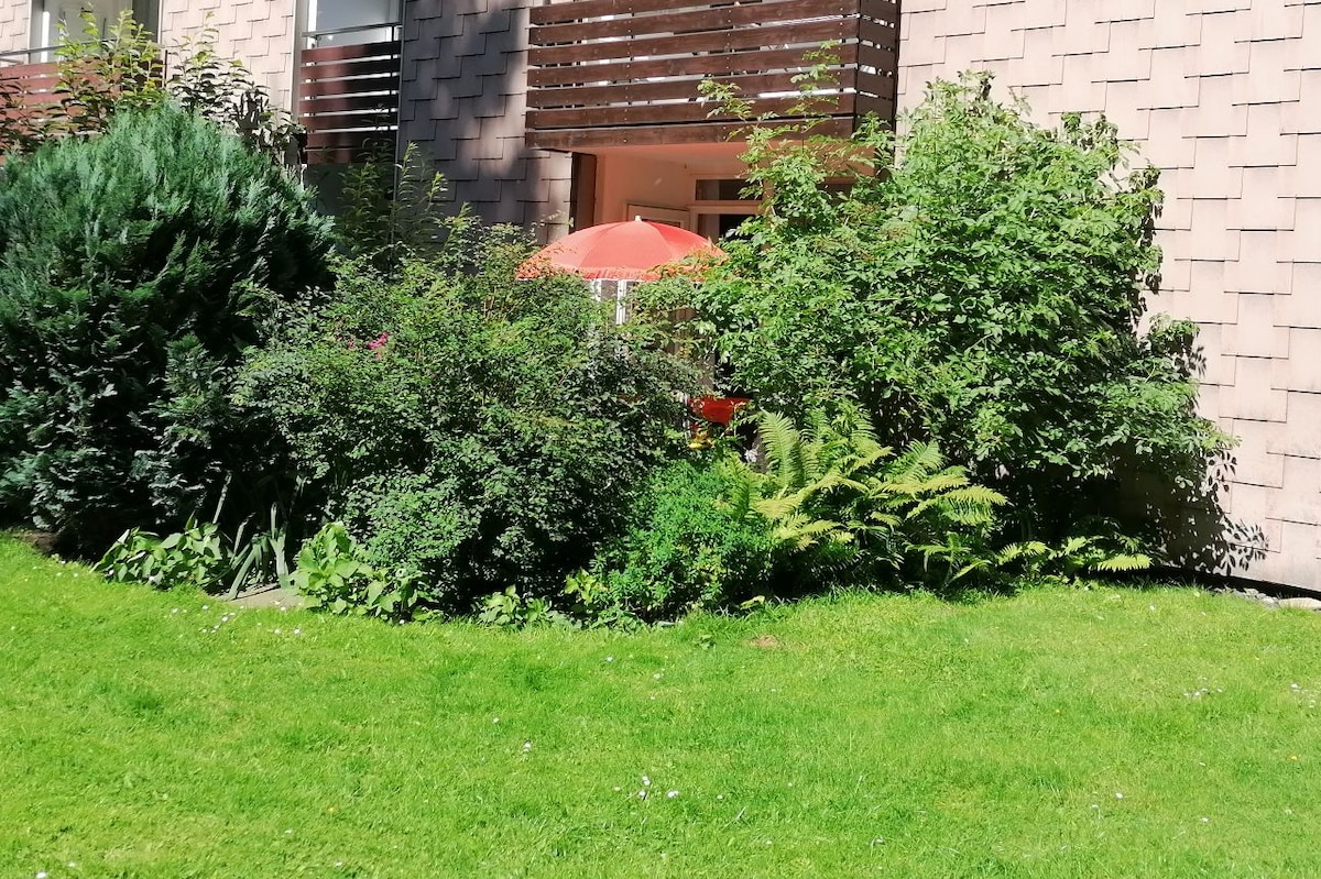 Sa ilalim ng mga beam ay may isang pangunahing inayos na apartment na may nakikitang mga kahoy na beam, maliwanag na istilo ng bansa at isang mainit na kapaligiran. Nagbibigay ng mainit‑init na hangin ang oven bukod pa sa gas heating. Ang apartment ay ganap na bagong inayos, angkop para sa aso at perpekto para sa mga bisitang gusto ng maginhawa at awtentiko. Aayusin ang disenyo ng lugar na nasa labas sa mga buwan ng tag‑init. Tahimik na lokasyon sa Angerstein para makapagpahinga at makapagpahinga!!!